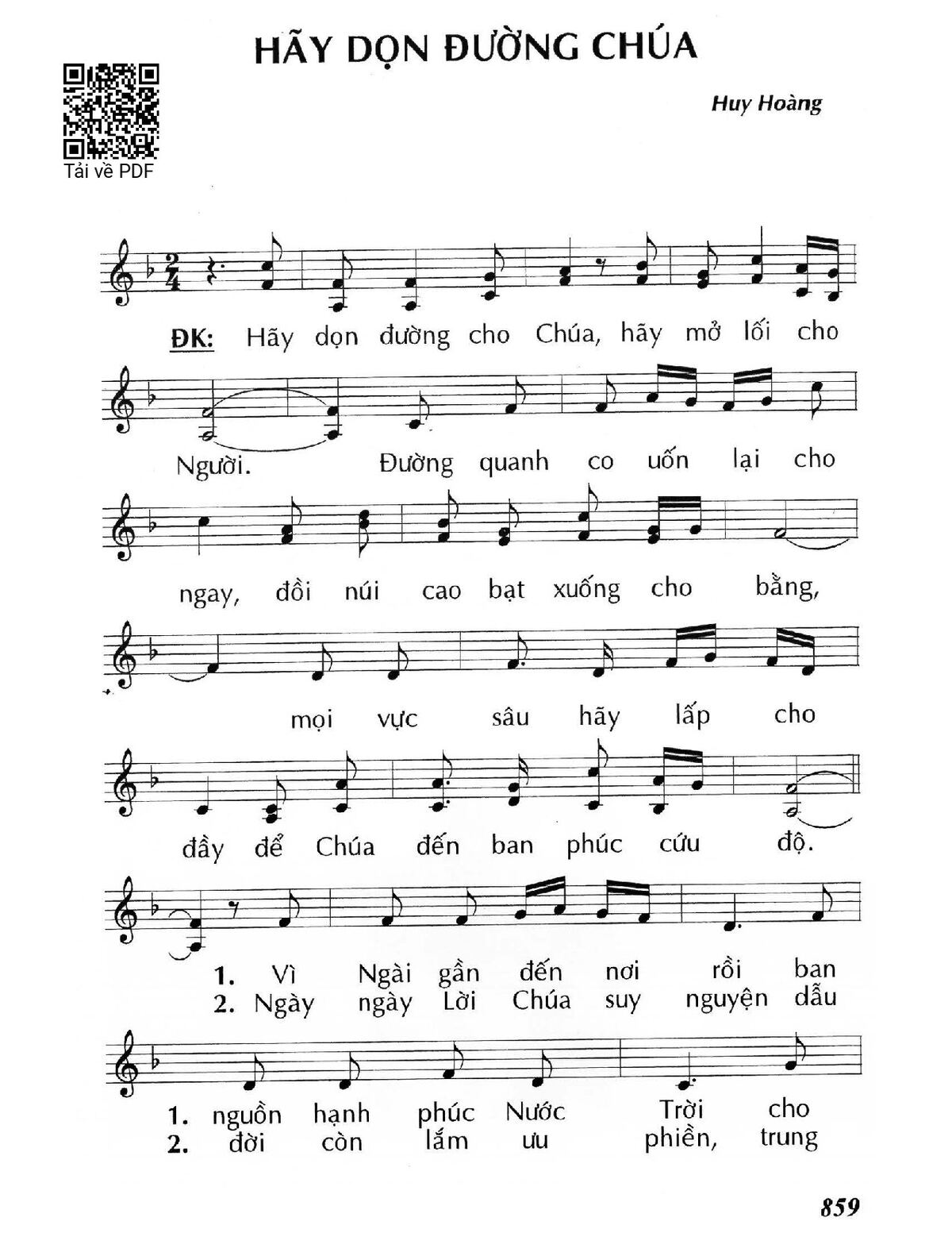 Page 1 of Sheet music PDF Hãy dọn đường Chúa - Huy Hoàng