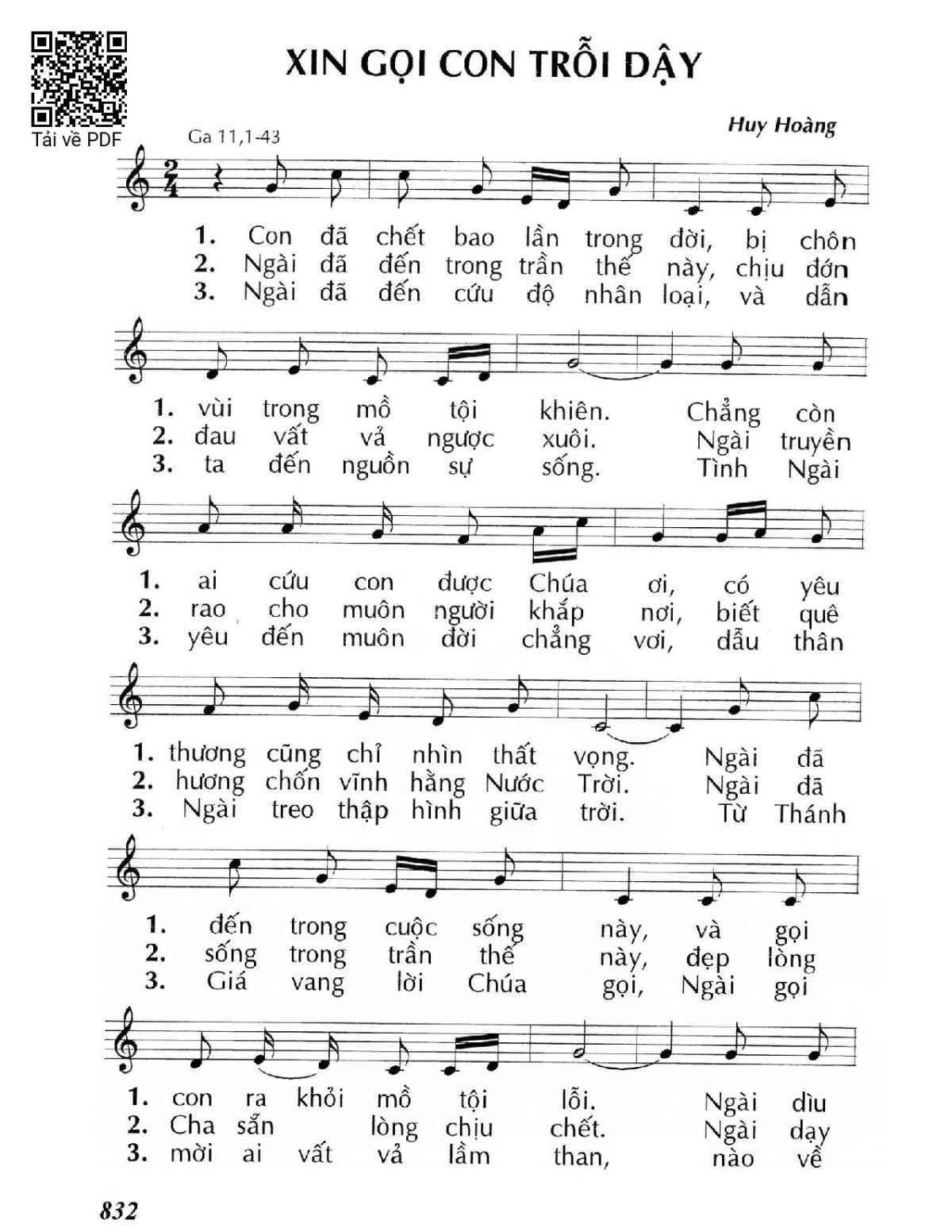 Sheet music Xin gọi con trỗi dậy by Huy Hoàng and PDF file was posted here to support you to practice singing perfectly. Sheets with notes and chords are for reference only, for non-commercial purposes only, not involved with earning money by buying and selling. Copyright is belong to song writer/author and copyright owner. Truongca.com do not own any copyrighted content. You can download the high-quality PDF files which contain staffs by PDF link above.