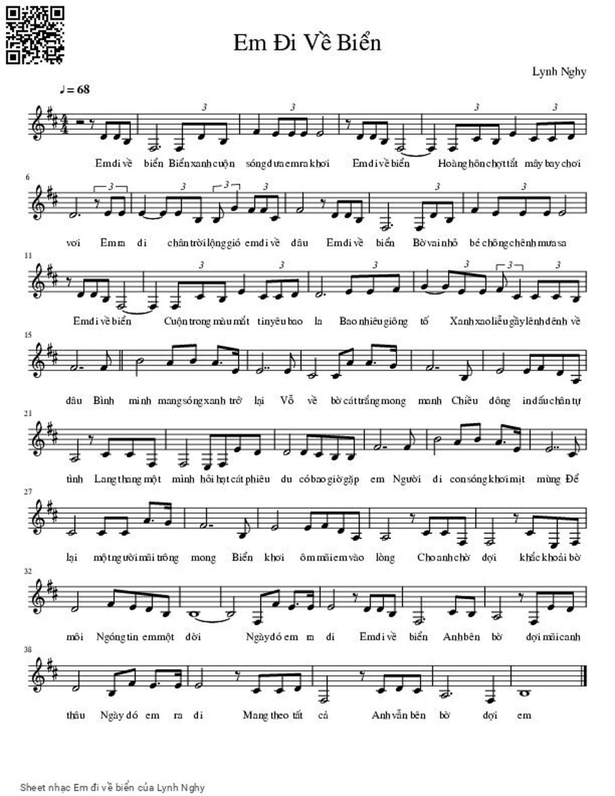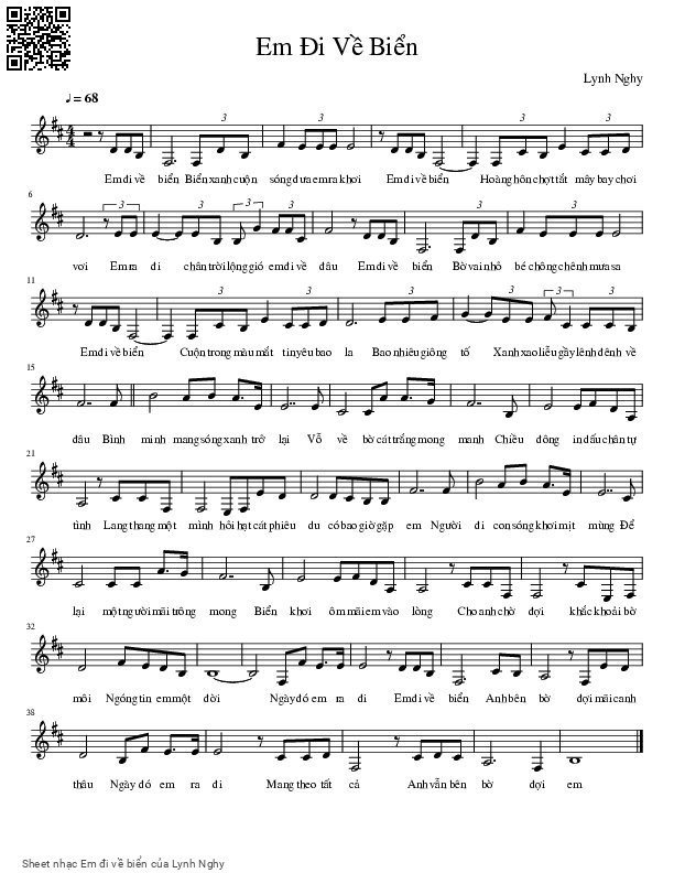 Lynh Nghy Em đi về biển Biển xanh cuộn sóng đưa em ra khơi [PDF] [Sheet] [Lyrics] [Mp4/Midi]