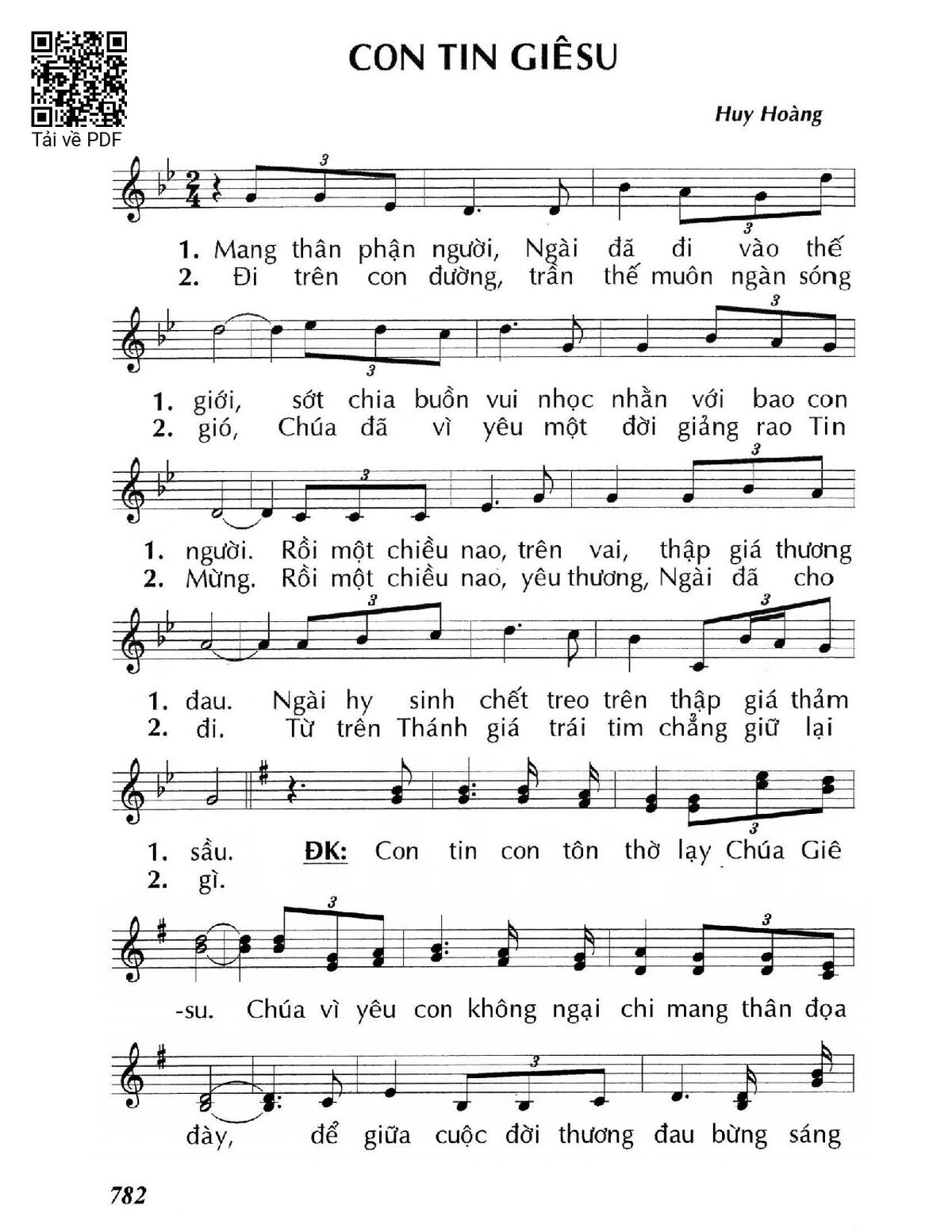 Sheet music Con tin Giêsu by Huy Hoàng and PDF file was posted here to support you to practice singing perfectly. Sheets with notes and chords are for reference only, for non-commercial purposes only, not involved with earning money by buying and selling. Copyright is belong to song writer/author and copyright owner. Truongca.com do not own any copyrighted content. You can download the high-quality PDF files which contain staffs by PDF link above.