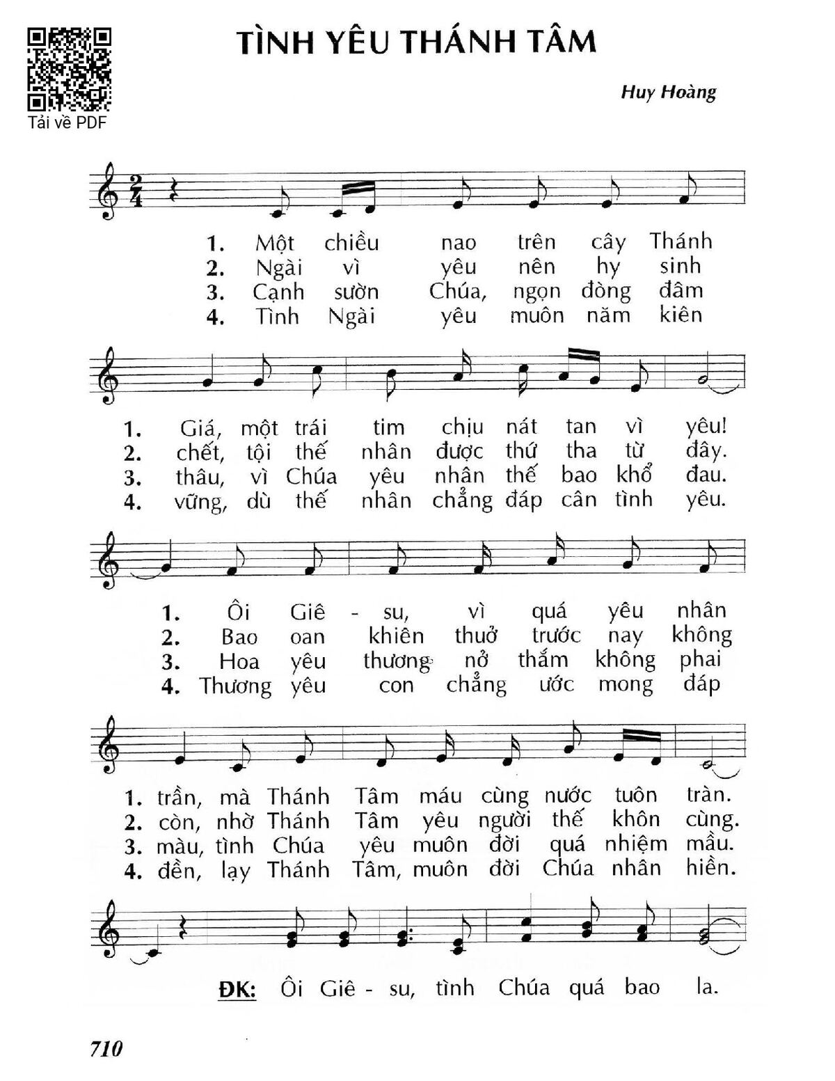 Sheet music Tình yêu Thánh Tâm by Huy Hoàng and PDF file was posted here to support you to practice singing perfectly. Sheets with notes and chords are for reference only, for non-commercial purposes only, not involved with earning money by buying and selling. Copyright is belong to song writer/author and copyright owner. Truongca.com do not own any copyrighted content. You can download the high-quality PDF files which contain staffs by PDF link above.