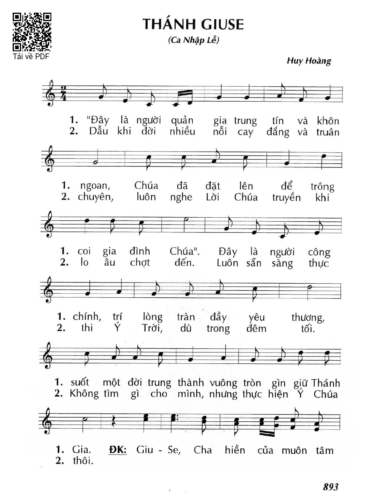 Sheet music Thánh Giuse by Huy Hoàng and PDF file was posted here to support you to practice singing perfectly. Sheets with notes and chords are for reference only, for non-commercial purposes only, not involved with earning money by buying and selling. Copyright is belong to song writer/author and copyright owner. Truongca.com do not own any copyrighted content. You can download the high-quality PDF files which contain staffs by PDF link above.