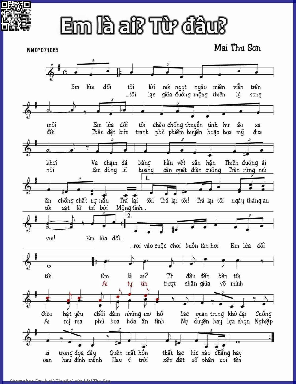 Mai Thu Sơn Em lừa dối tôi lời nói ngọt ngào miên viễn trên môi [PDF] [Sheet] [Lyrics] [Mp4/Midi]
