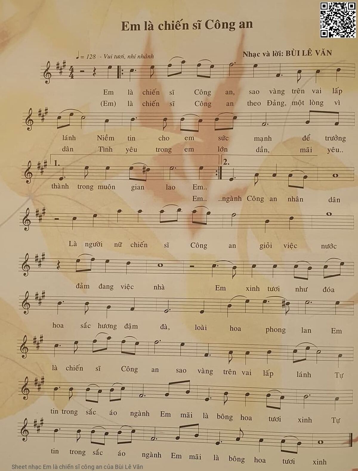 Bùi Lê Văn Em là chiến sĩ công an Sao vàng trên vai lấp lánh [PDF] [Sheet] [Lyrics] [Mp4/Midi]