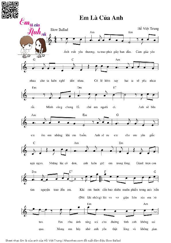 The Videos/audios Em là của anh by Hồ Việt Trung were embed from Youtube, Musescore or the other 3rd links. Videos are subject to 3rd's copyright control and may be removed by YouTube's copyright rules and 3rd's policies or maybe included advertisements. If you cannot access to these songs, this mean that have been removed.