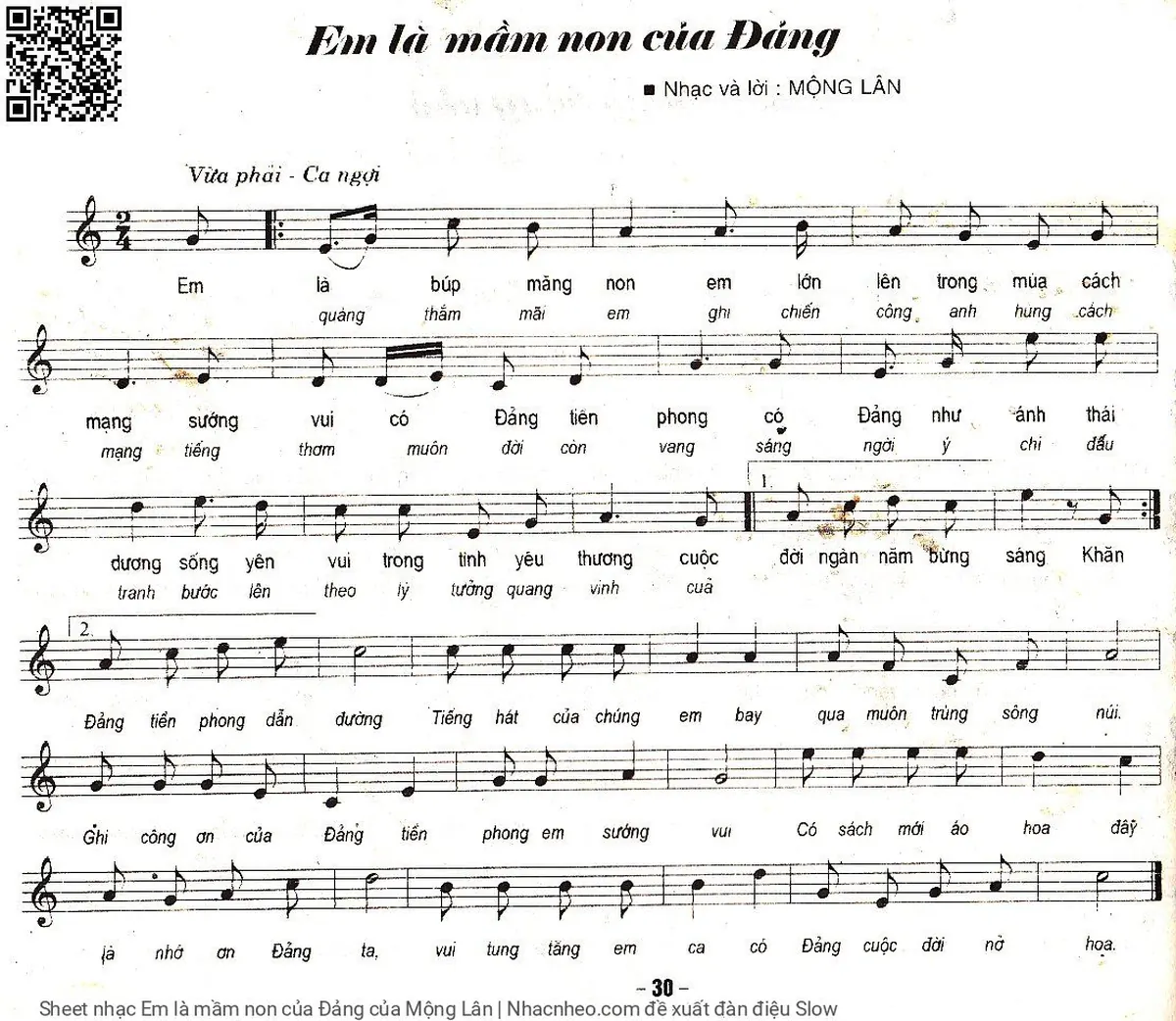 Mộng Lân Em là búp măng non em lớn lên trong mùa cách mạng [PDF] [Sheet] [Lyrics] [Mp4/Midi]