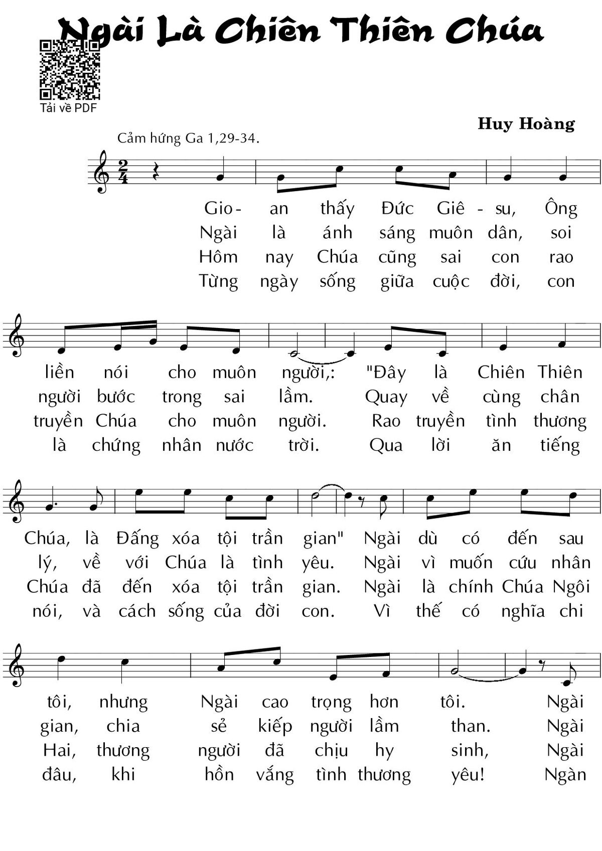 Sheet PDF with the same name Ngài là Chiên Thiên Chúa (CN 2 TN A) – Huy Hoàng: