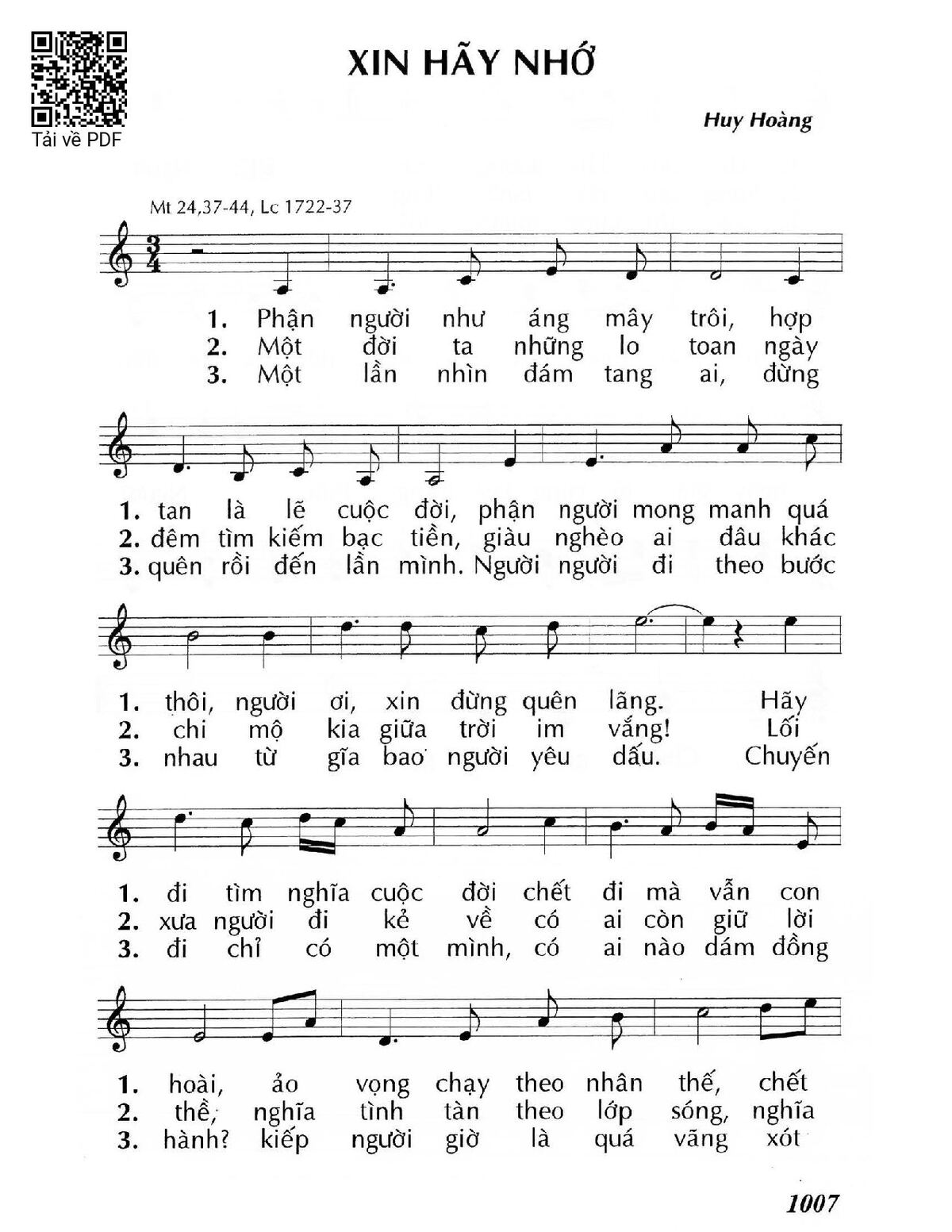 Page 1 of Sheet music PDF Xin hãy nhớ (Mt 24,37-44) - Huy Hoàng