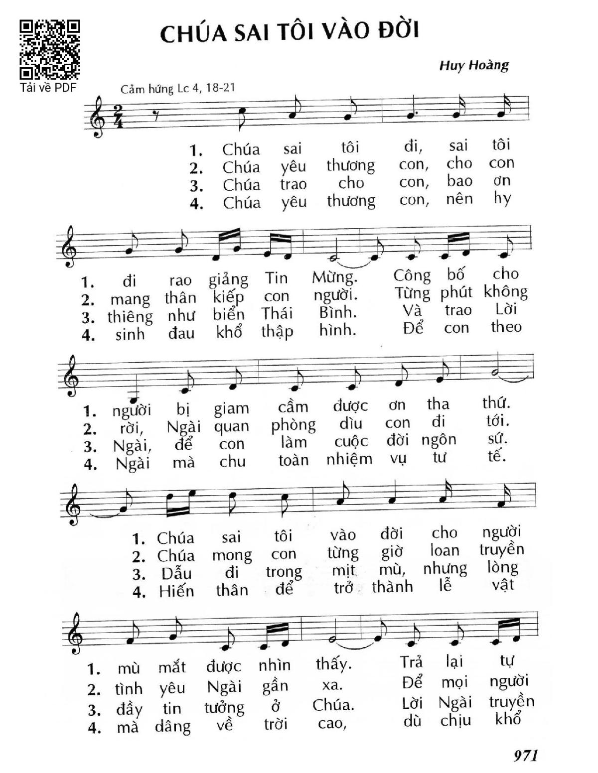 Page 1 of Sheet music PDF Chúa sai tôi vào đời (Lc 4,18-21) - Huy Hoàng