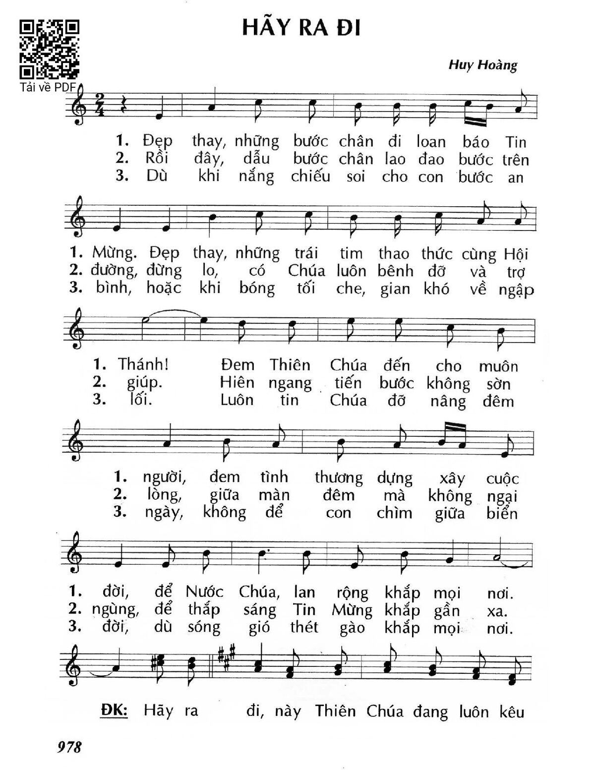 Sheet music Hãy ra đi by Huy Hoàng and PDF file was posted here to support you to practice singing perfectly. Sheets with notes and chords are for reference only, for non-commercial purposes only, not involved with earning money by buying and selling. Copyright is belong to song writer/author and copyright owner. Truongca.com do not own any copyrighted content. You can download the high-quality PDF files which contain staffs by PDF link above.