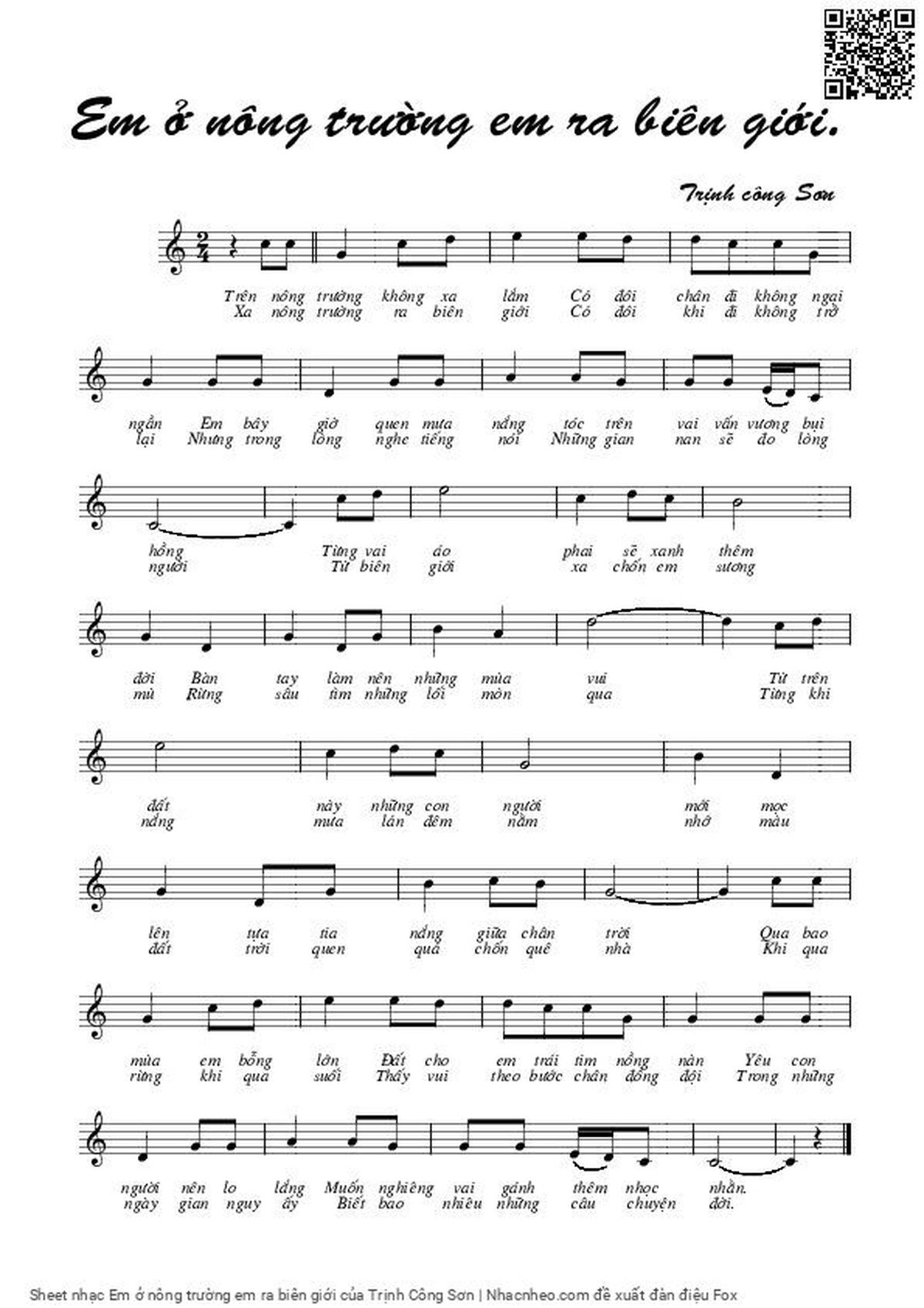 Trịnh Công Sơn Trên nông trường không xa lắm Có đôi chân đi không ngại ngần [PDF] [Sheet] [Lyrics] [Mp4/Midi]