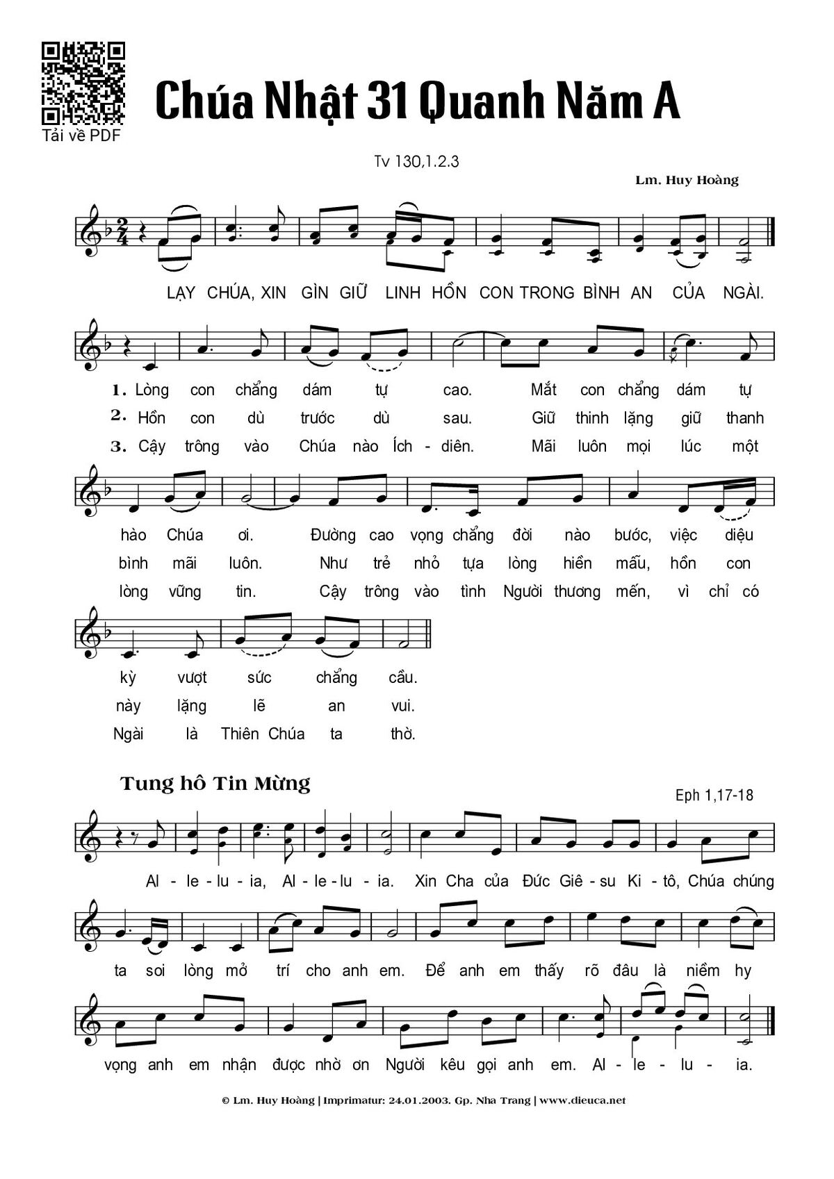 Page 1 of Sheet music PDF Chúa Nhật 31A Thường Niên  - Huy Hoàng