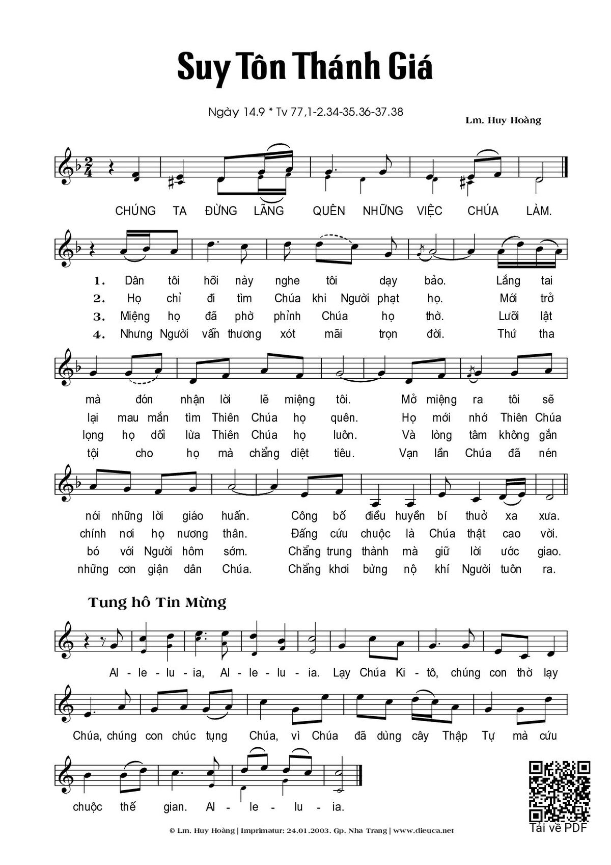 Page 1 of Sheet music PDF Suy Tôn Thánh Giá - Huy Hoàng