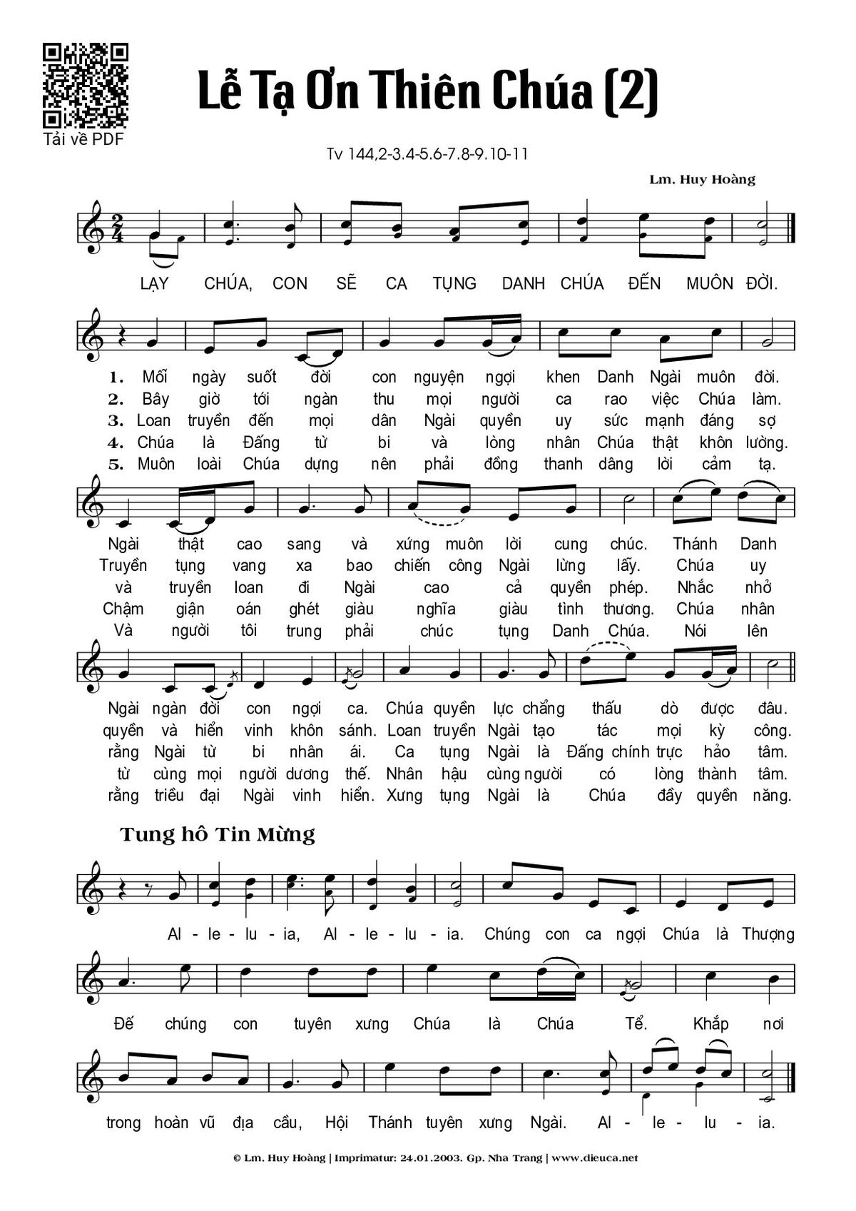 Page 1 of Sheet music PDF Lễ Tạ Ơn Thiên Chúa - Huy Hoàng