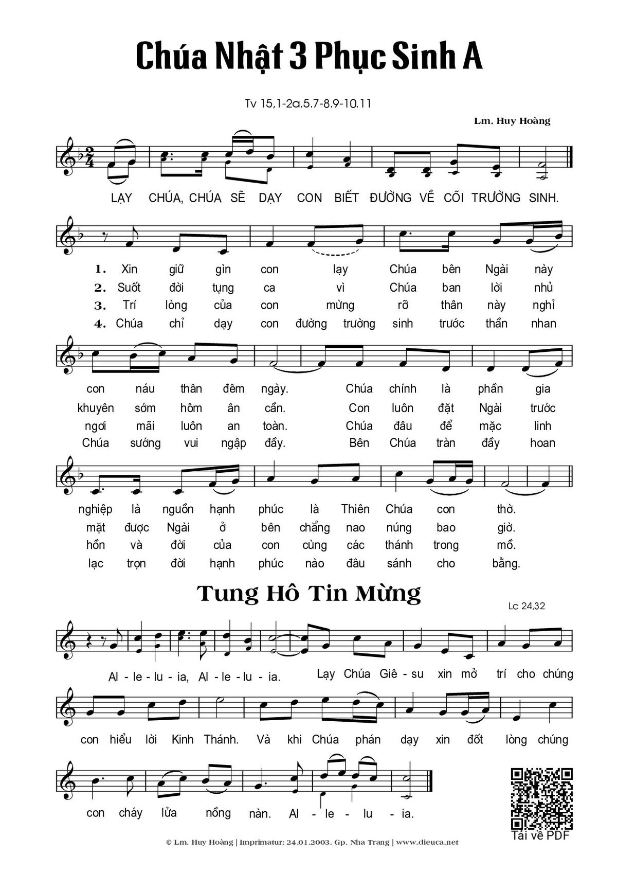 Page 1 of Sheet music PDF Chúa Nhật 3A Phục Sinh (Thánh Vịnh 15) - Huy Hoàng