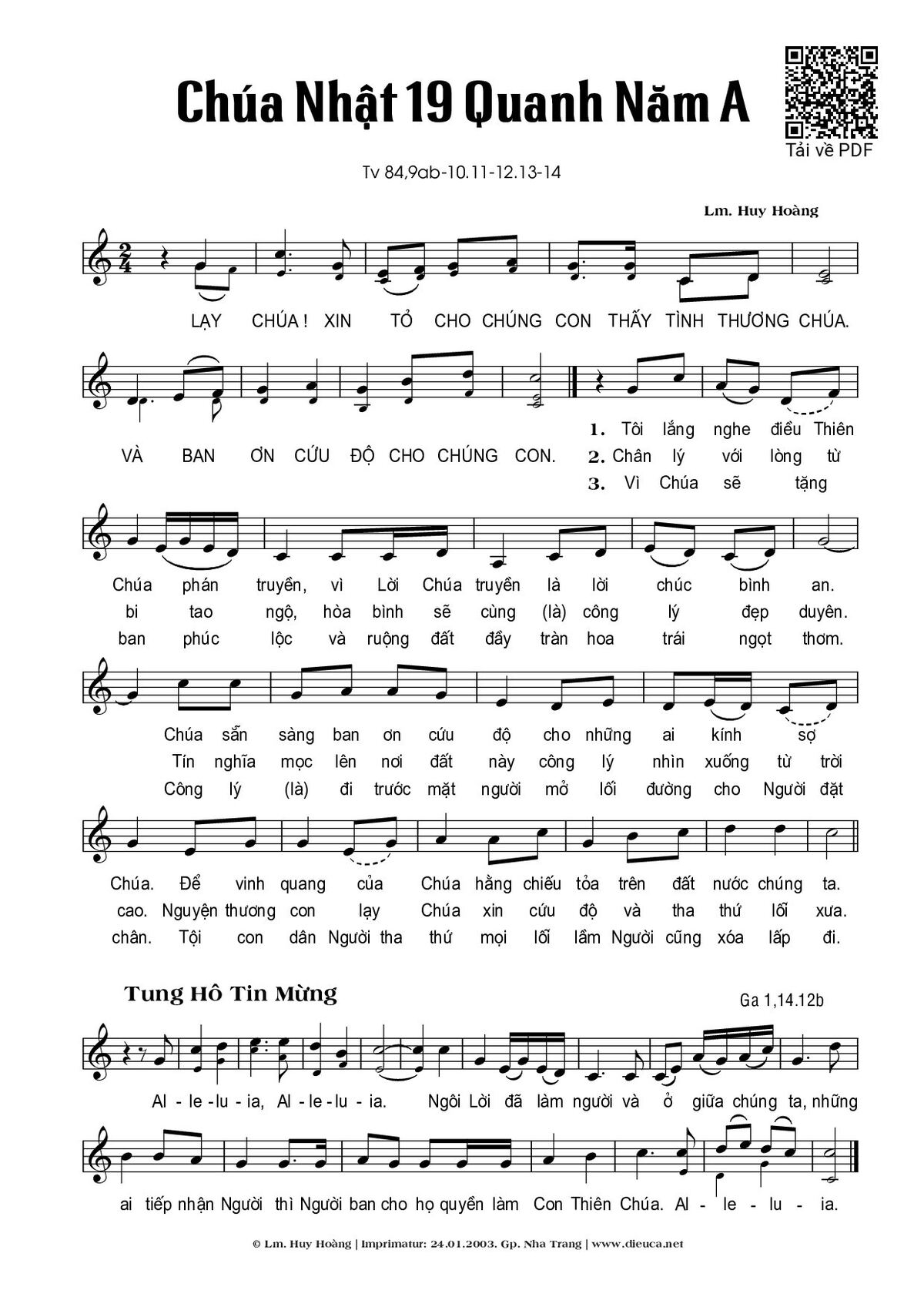Page 1 of Sheet music PDF Chúa Nhật 19A Thường Niên (Thánh Vịnh 84) - Huy Hoàng