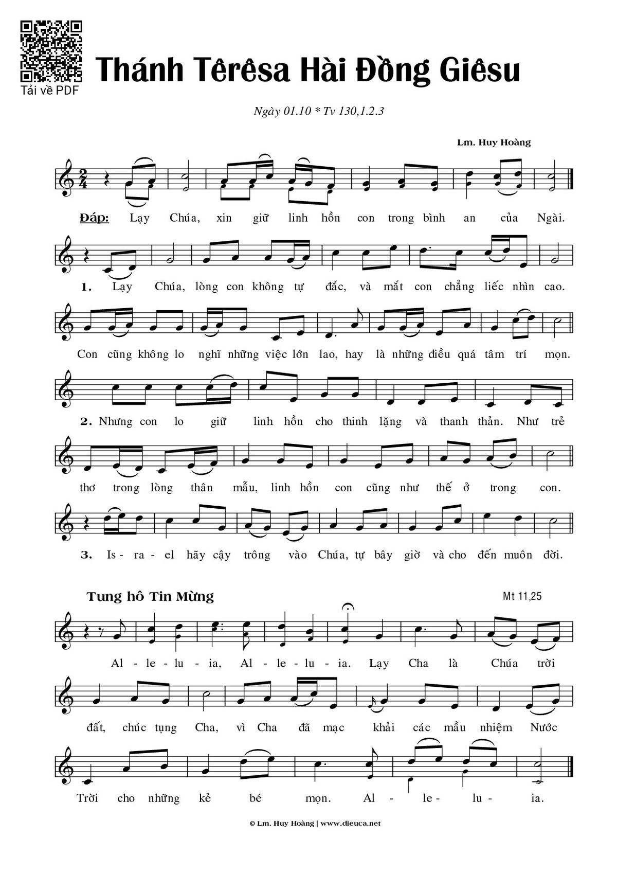 Page 1 of Sheet music PDF Thánh Nữ Têrêsa Hài Đồng Giêsu (01.10) - Huy Hoàng