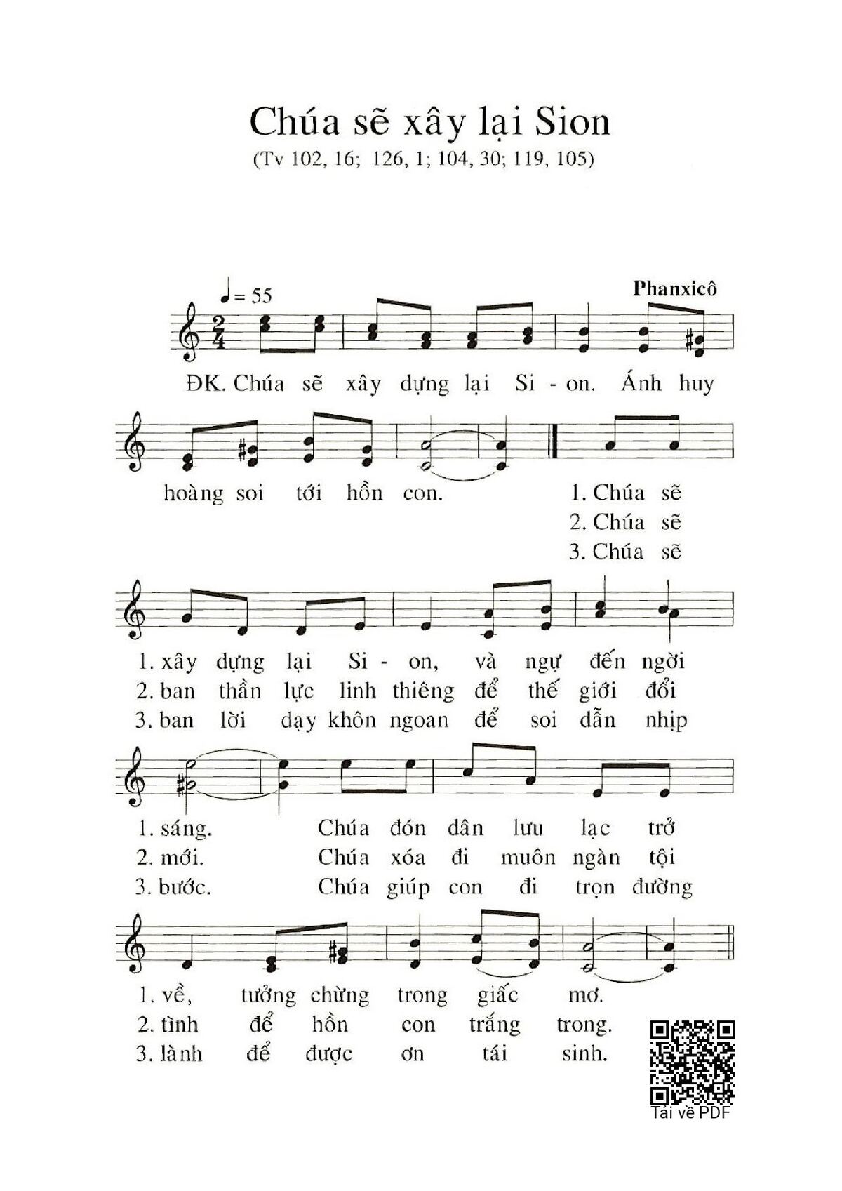 Điệp khúc. Chúa sẽ xây dựng lại Si-on. Ánh huy hoàng soi tới hồn con.