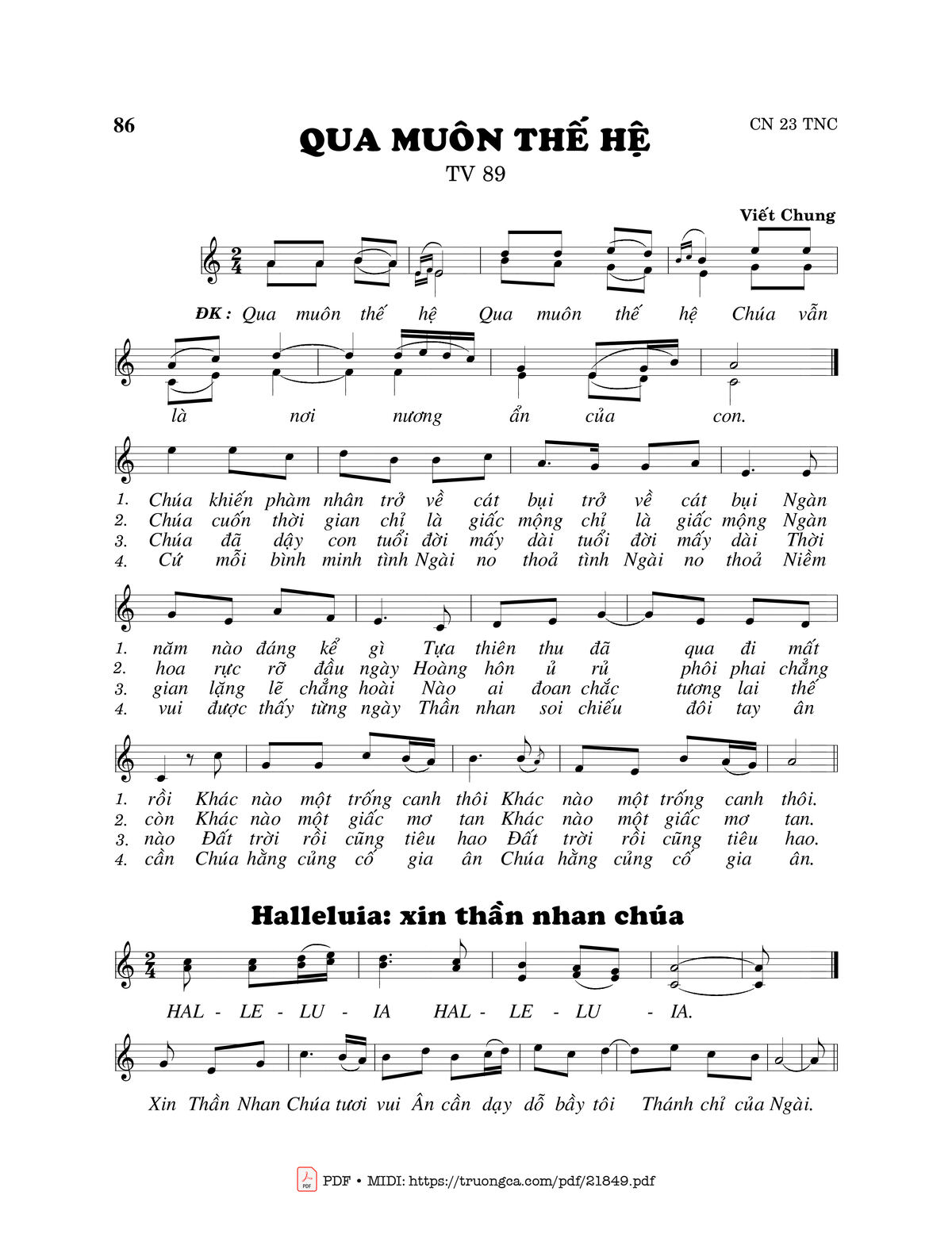 More similar sheets PDF Thánh Vịnh 89, Qua Muôn Thế Hệ: