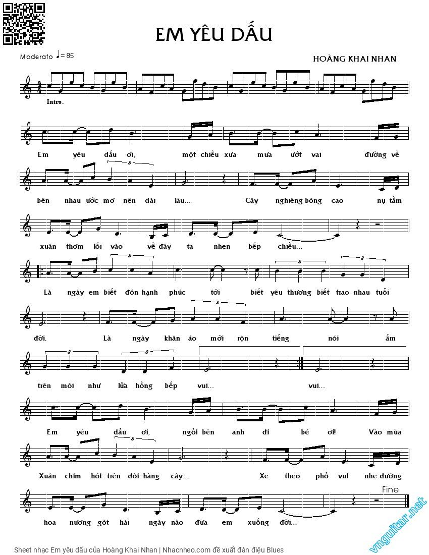 Hoàng Khai Nhan Em yêu dấu ơi một chiều mưa rơi ướt vai [PDF] [Sheet] [Lyrics] [Mp4/Midi]