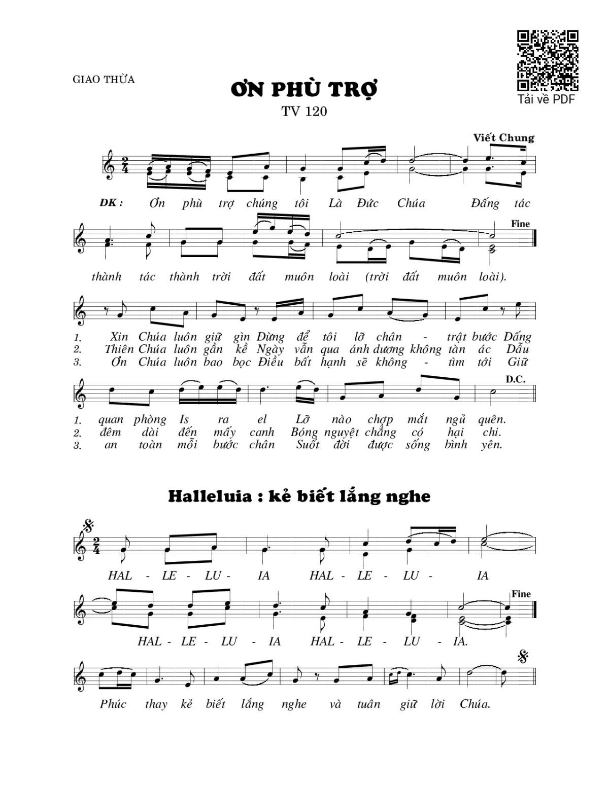 Sheet PDF with the same name Thánh Vịnh 120, Ơn Phù Trợ - Lễ Giao Thừa: