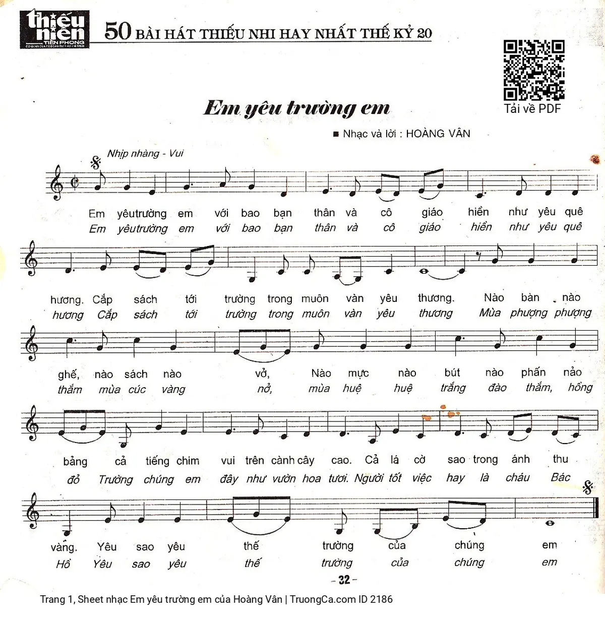 Sheet PDF with the same name Em yêu trường em: