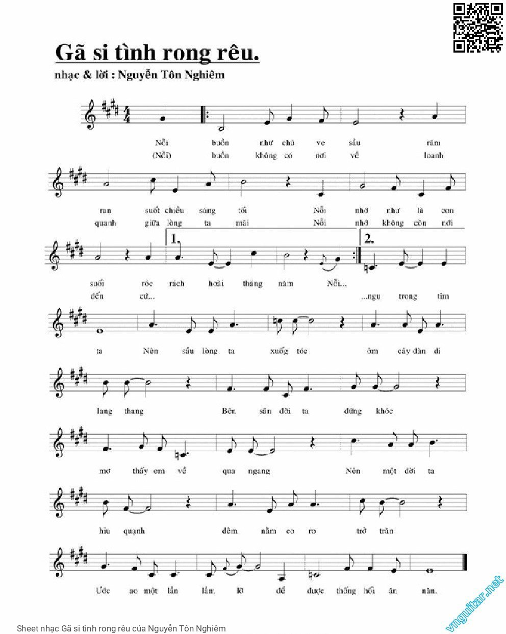 Nguyễn Tôn Nghiêm Nỗi buồn như chú ve sầu Râm ran suốt chiều sáng tối [PDF] [Sheet] [Lyrics] [Mp4/Midi]