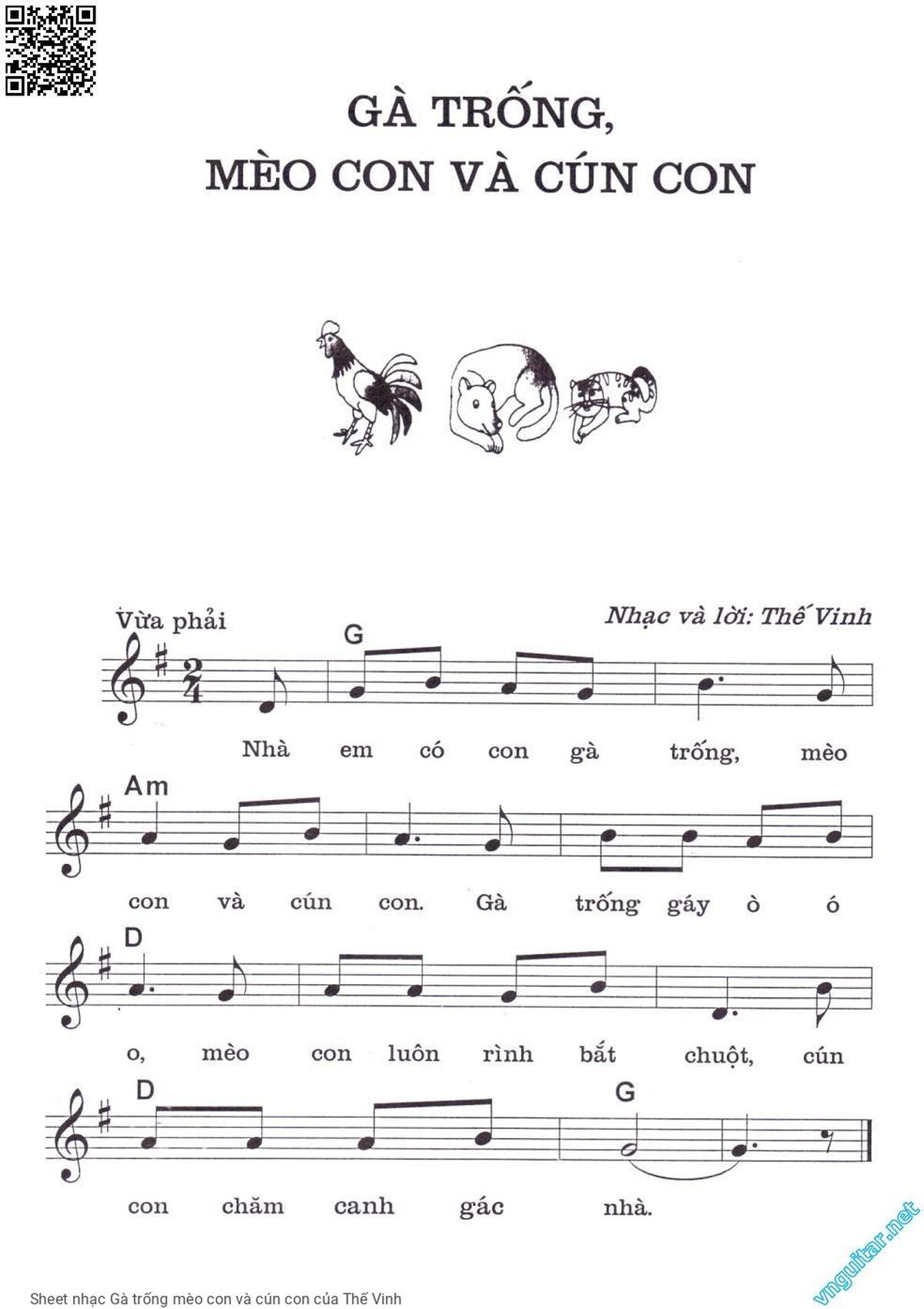 Thế Vinh Nhà em có con gà trống Mèo con và cún con [PDF] [Sheet] [Lyrics] [Mp4/Midi]