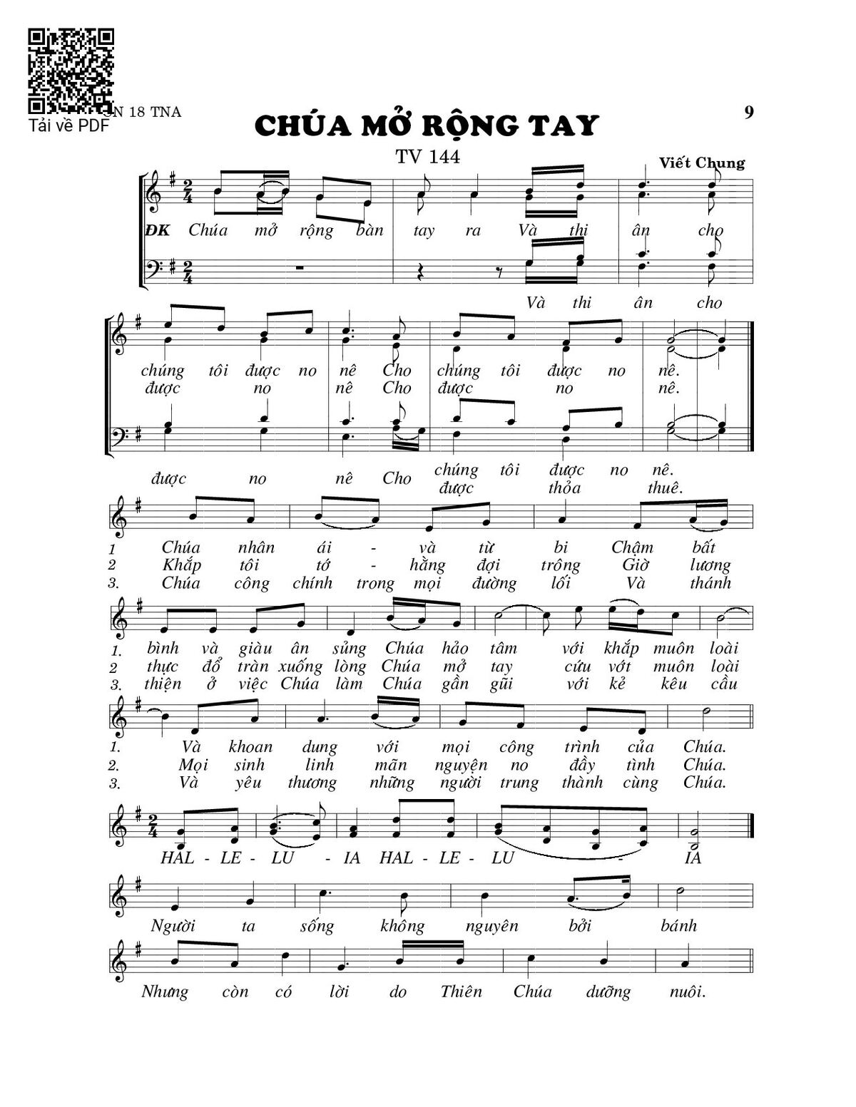 Page 1 of Sheet music PDF Chúa mở rộng tay (Thánh Vịnh 144) - Viết Chung