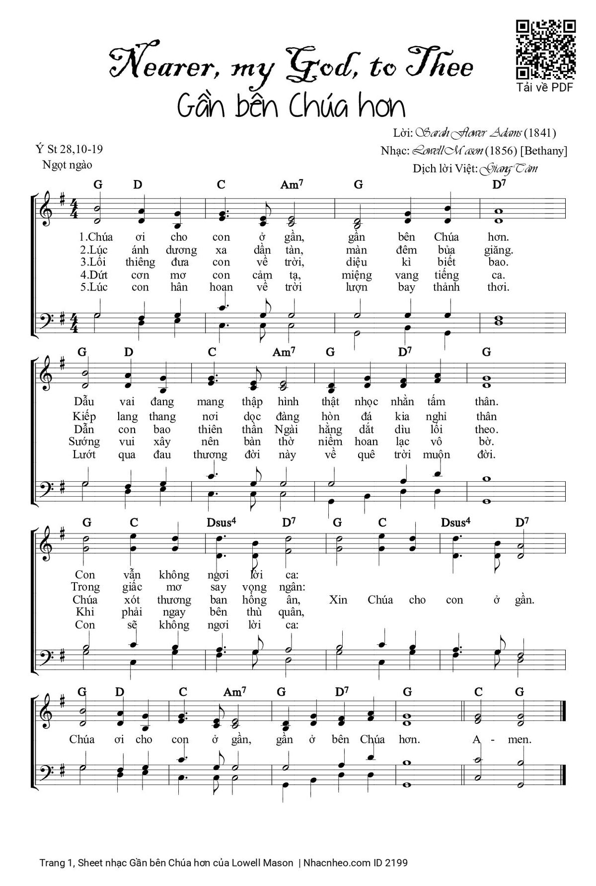 Lowell Mason CHÚA ƠI CON MONG GẦN NGÀI HƠN [PDF] [Sheet] [Lyrics] [Mp4/Midi]