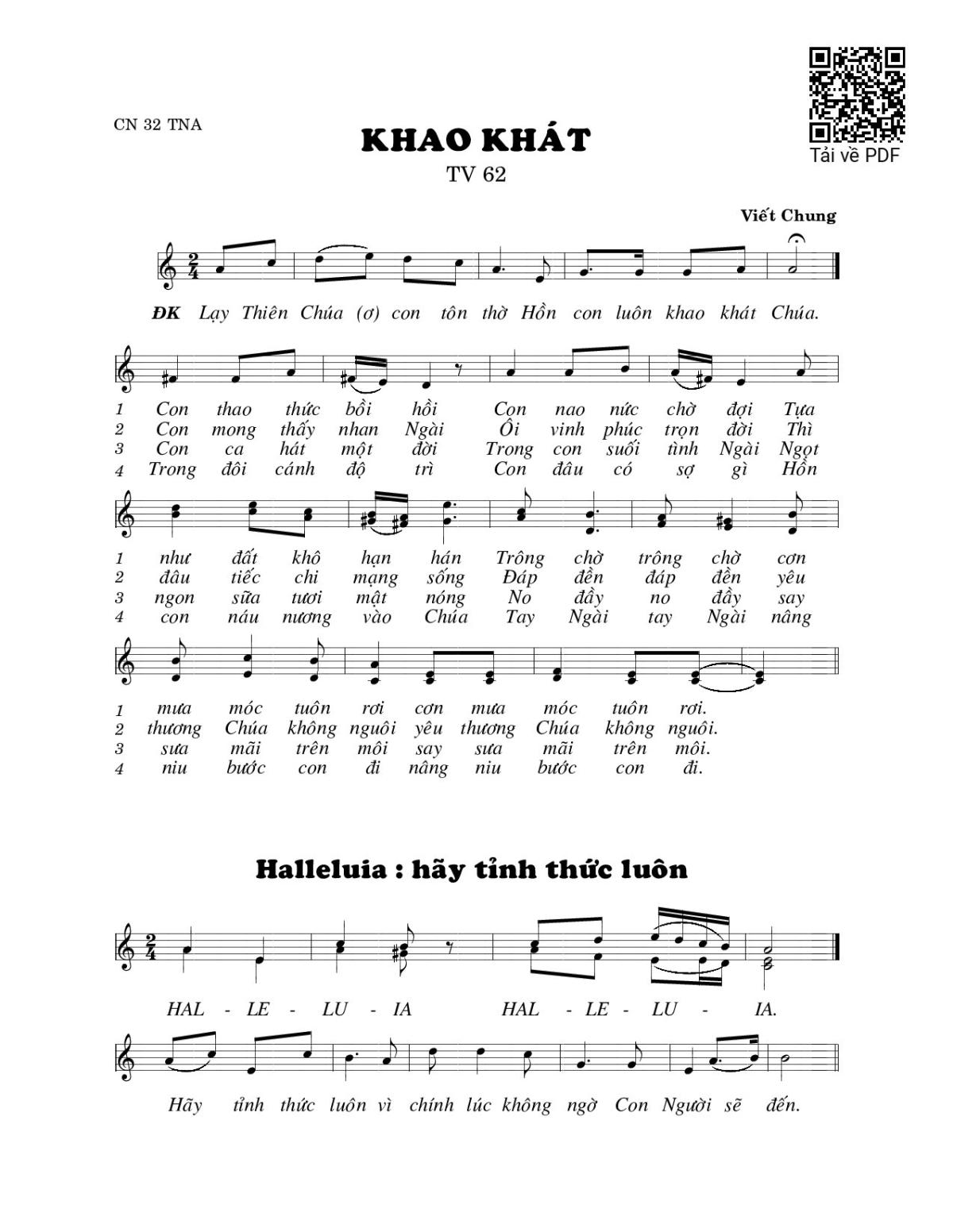 Sheet music Khao khát (Thánh Vịnh 62) by Viết Chung and PDF file was posted here to support you to practice singing perfectly. Sheets with notes and chords are for reference only, for non-commercial purposes only, not involved with earning money by buying and selling. Copyright is belong to song writer/author and copyright owner. Truongca.com do not own any copyrighted content. You can download the high-quality PDF files which contain staffs by PDF link above.