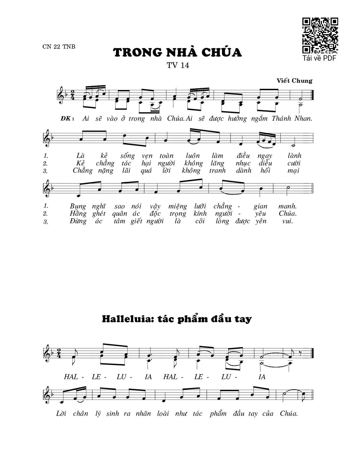Page 1 of Sheet music PDF Trong nhà Chúa (Thánh Vịnh 14) - Viết Chung