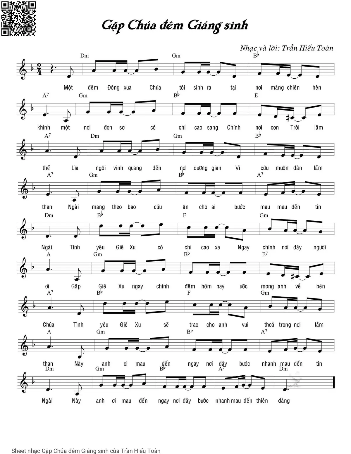 Transposition is the process of moving a song's melody and chords up or down in pitch by a constant interval. The direction of the transposition tool is indicated by a plus (+) sign for up and a minus (-) sign for down. Hover mouse over chords signs to see the chords chart of Gặp Chúa đêm Giáng sinh song.
