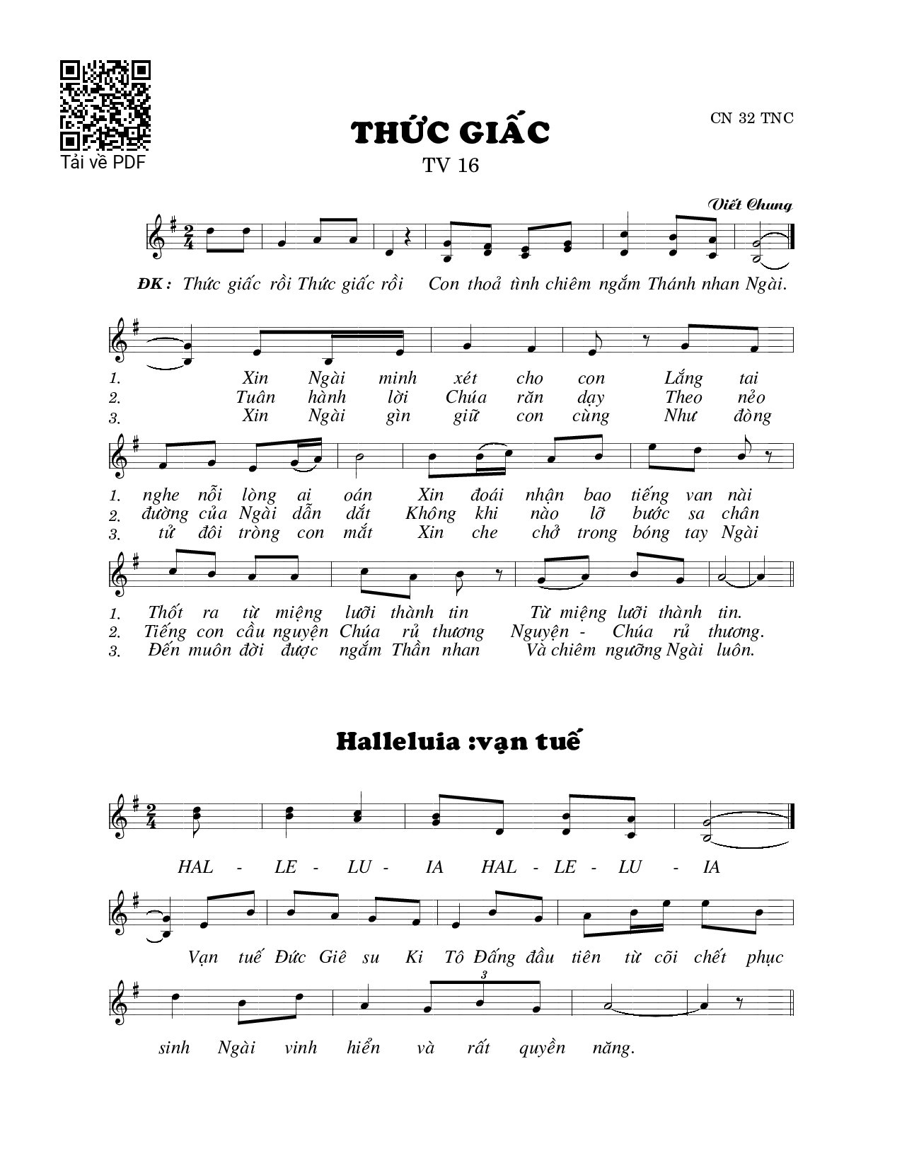 Sheet music Thức giấc (Thánh Vịnh 16) by Viết Chung and PDF file was posted here to support you to practice singing perfectly. Sheets with notes and chords are for reference only, for non-commercial purposes only, not involved with earning money by buying and selling. Copyright is belong to song writer/author and copyright owner. Truongca.com do not own any copyrighted content. You can download the high-quality PDF files which contain staffs by PDF link above.