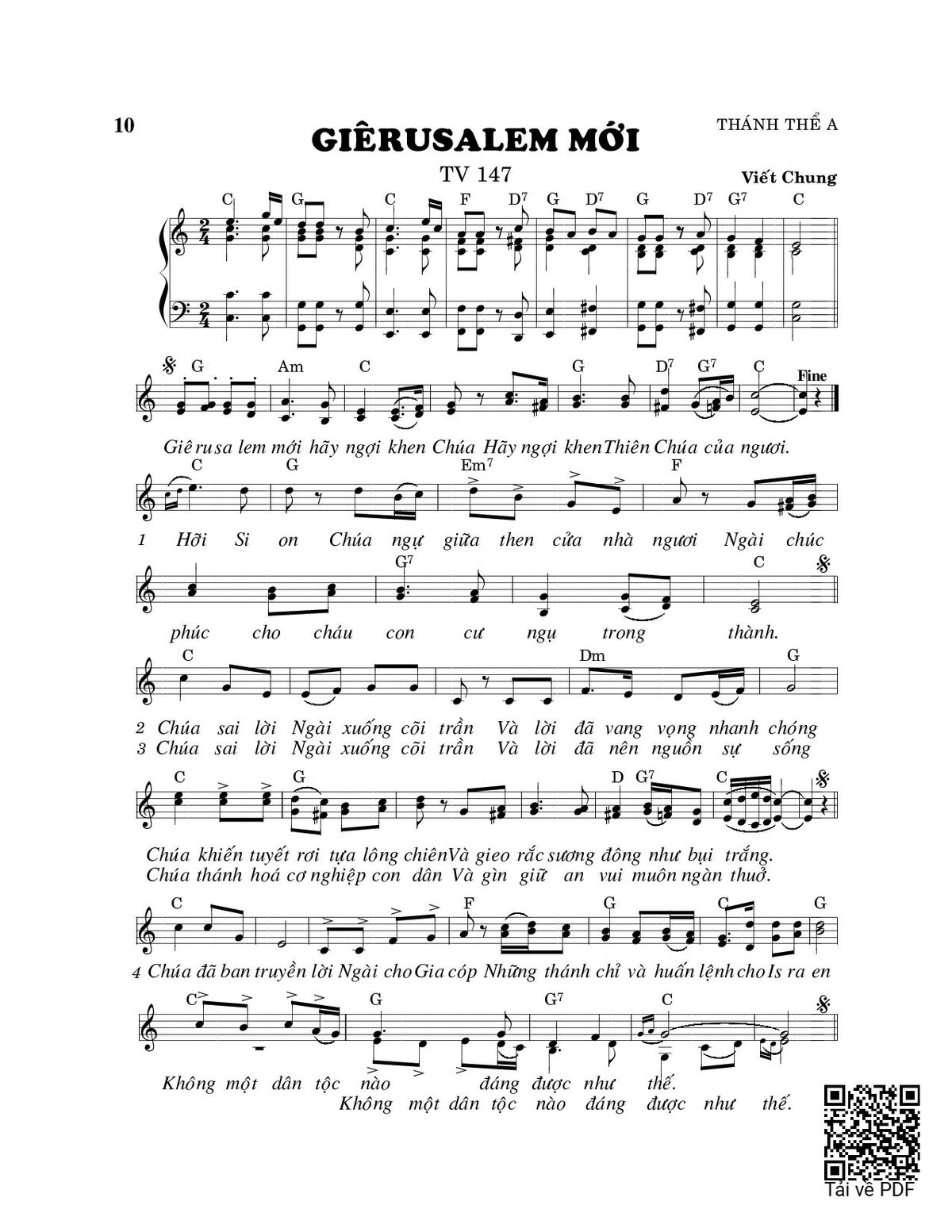 Page 1 of Sheet music PDF Giêrusalem mới (Thánh Vịnh 147) - Viết Chung