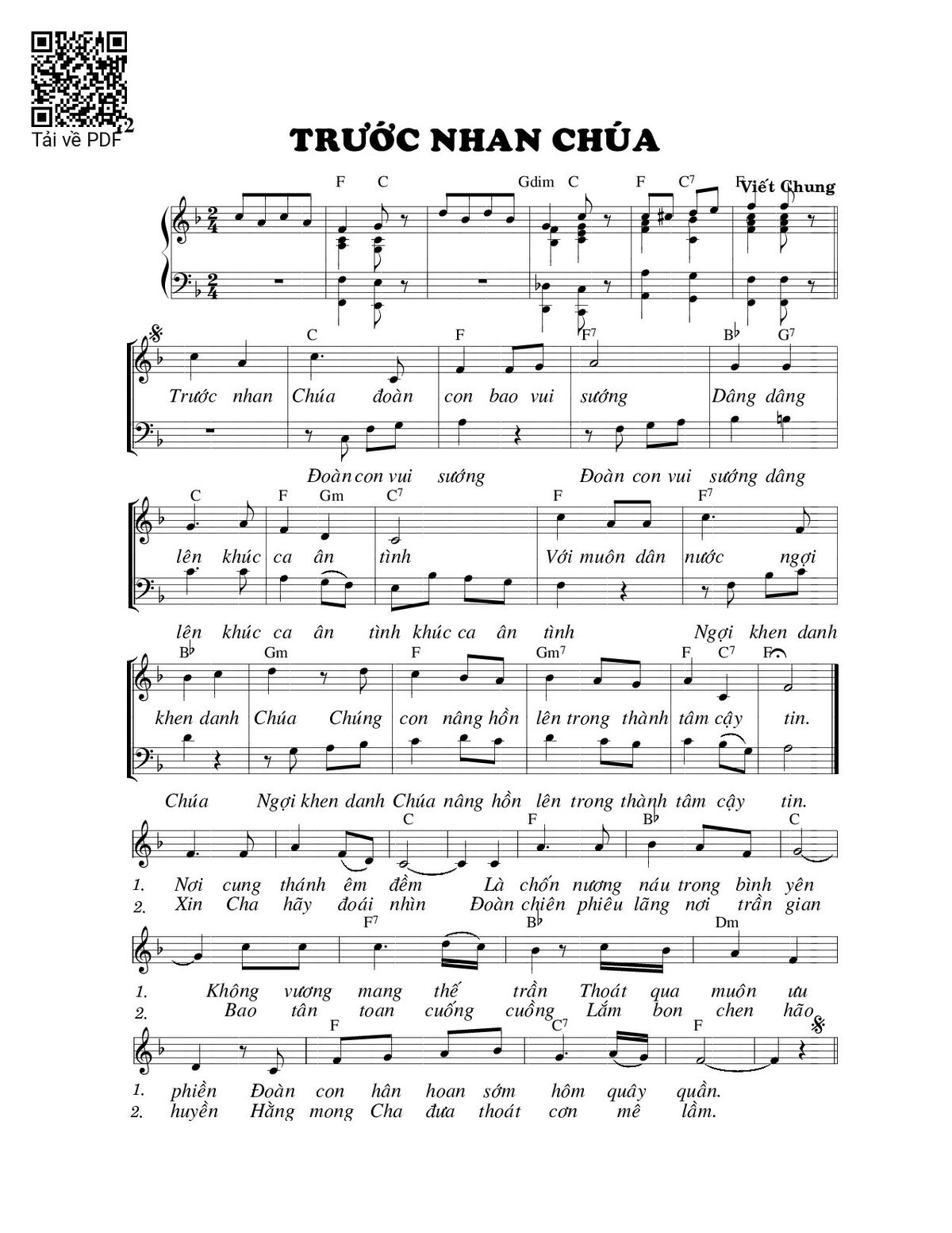 Sheet music Trước nhan Chúa by Viết Chung and PDF file was posted here to support you to practice singing perfectly. Sheets with notes and chords are for reference only, for non-commercial purposes only, not involved with earning money by buying and selling. Copyright is belong to song writer/author and copyright owner. Truongca.com do not own any copyrighted content. You can download the high-quality PDF files which contain staffs by PDF link above.
