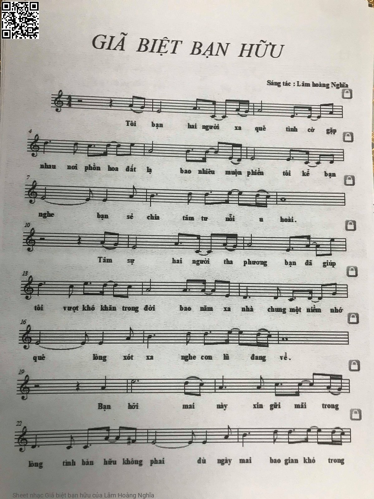 The Videos/audios Giã biệt bạn hữu by Lâm Hoàng Nghĩa were embed from Youtube, Musescore or the other 3rd links. Videos are subject to 3rd's copyright control and may be removed by YouTube's copyright rules and 3rd's policies or maybe included advertisements. If you cannot access to these songs, this mean that have been removed.