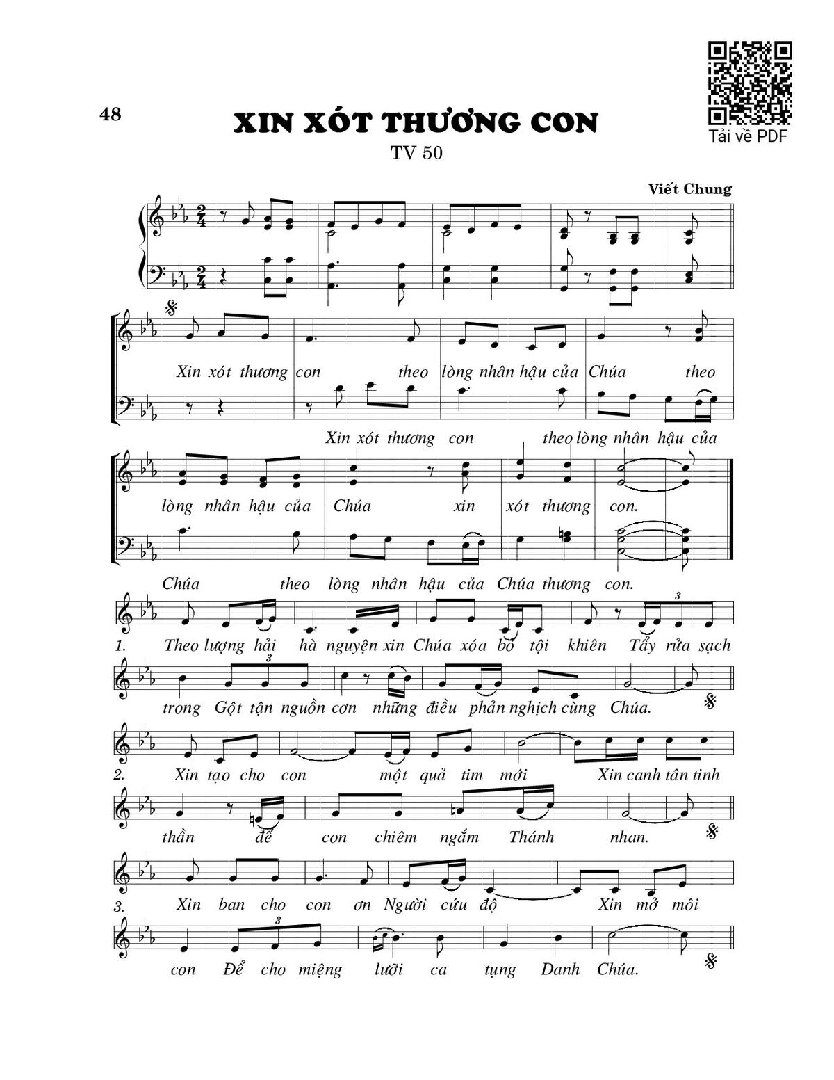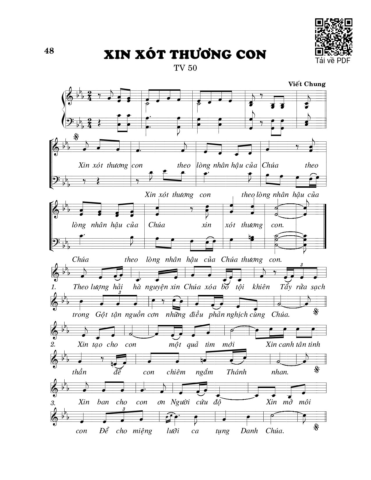 Sheet music Xin xót thương con by Viết Chung and PDF file was posted here to support you to practice singing perfectly. Sheets with notes and chords are for reference only, for non-commercial purposes only, not involved with earning money by buying and selling. Copyright is belong to song writer/author and copyright owner. Truongca.com do not own any copyrighted content. You can download the high-quality PDF files which contain staffs by PDF link above.