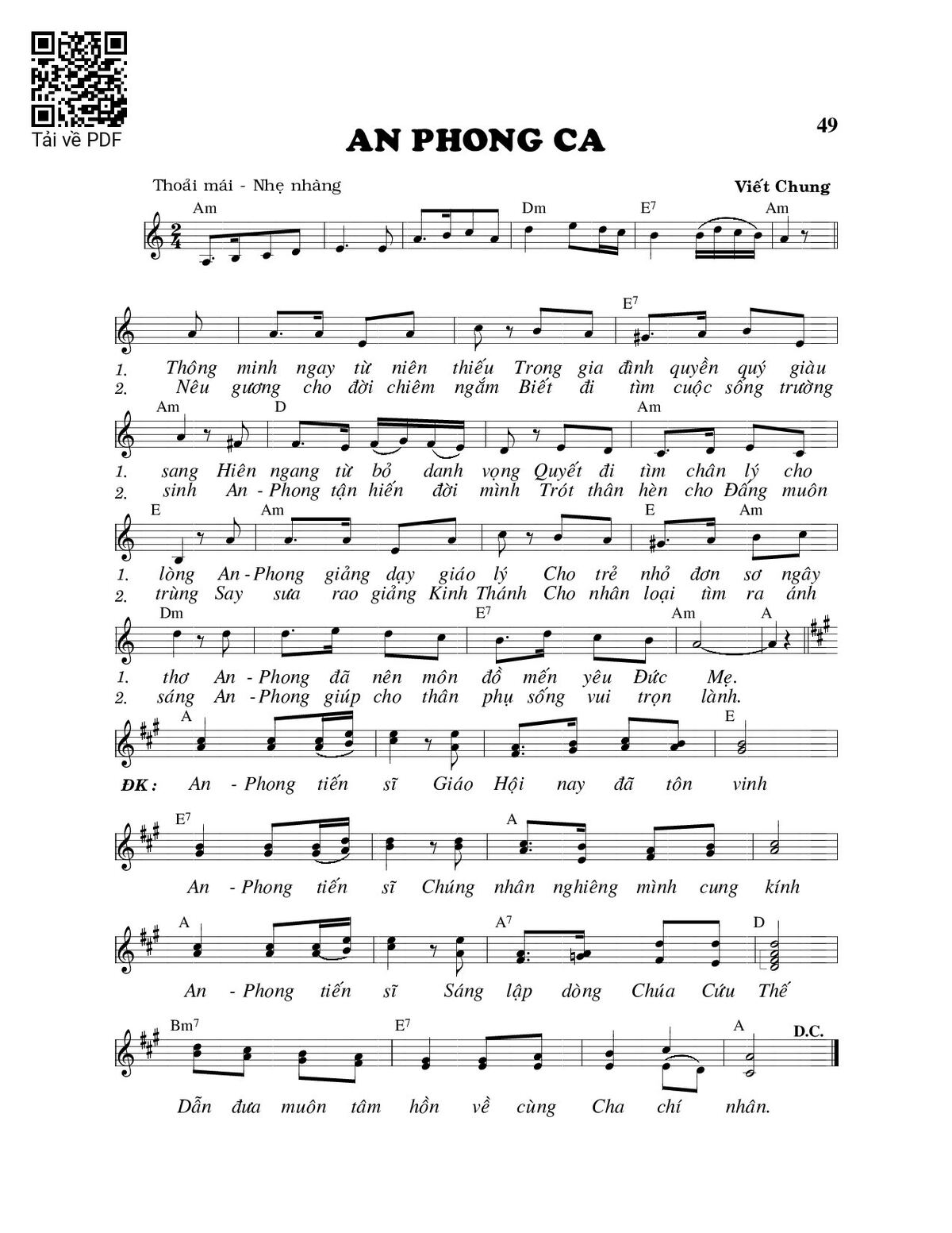 Page 1 of Sheet music PDF Anphong ca - Viết Chung