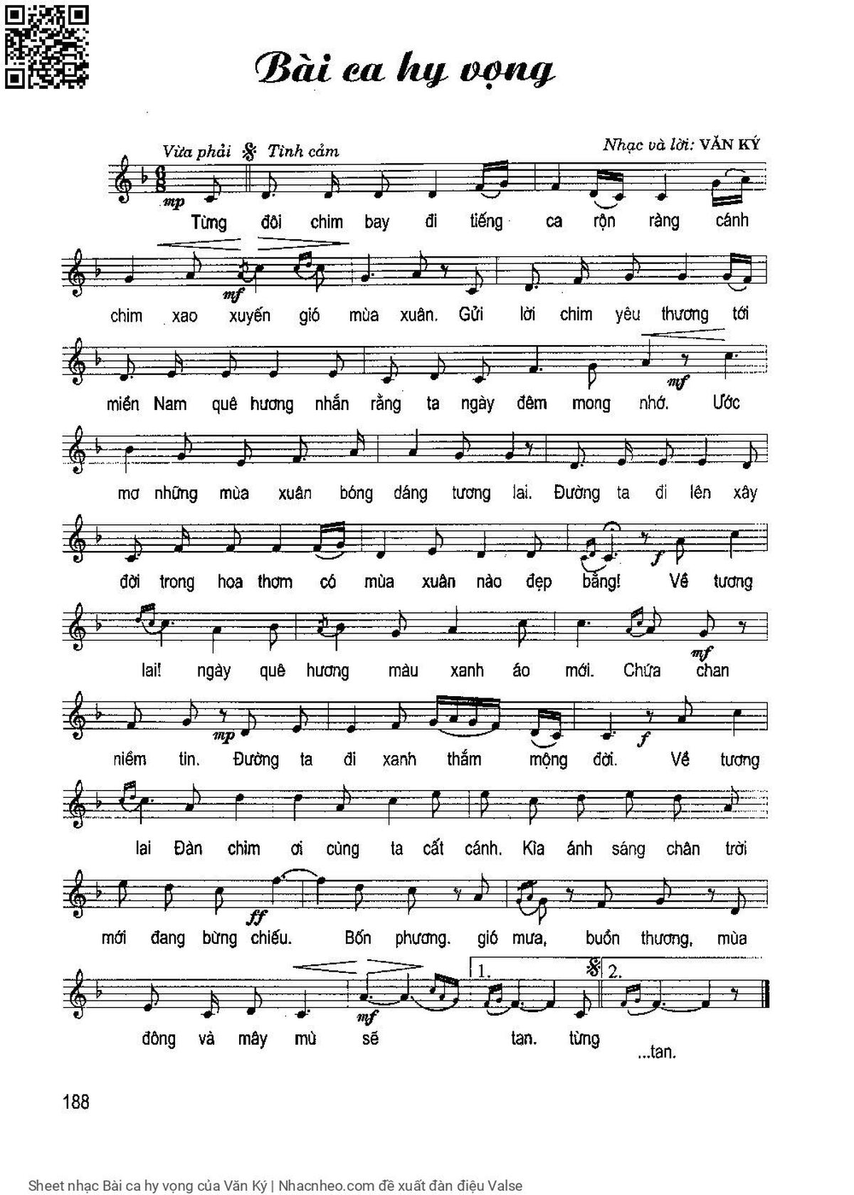 Văn Ký Từng đôi chim bay đi tiếng ca rộn ràng [PDF] [Sheet] [Lyrics] [Mp4/Midi]