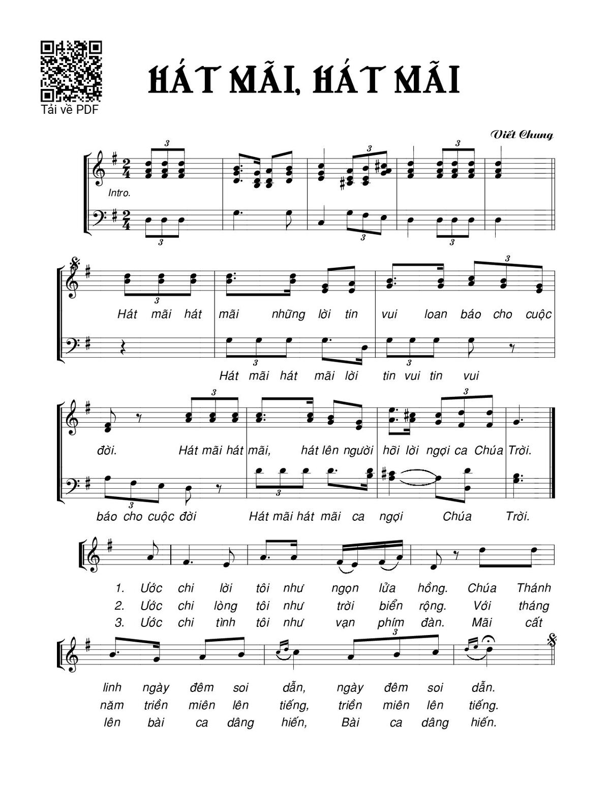 Page 1 of Sheet music PDF Hát mãi hát mãi - Viết Chung