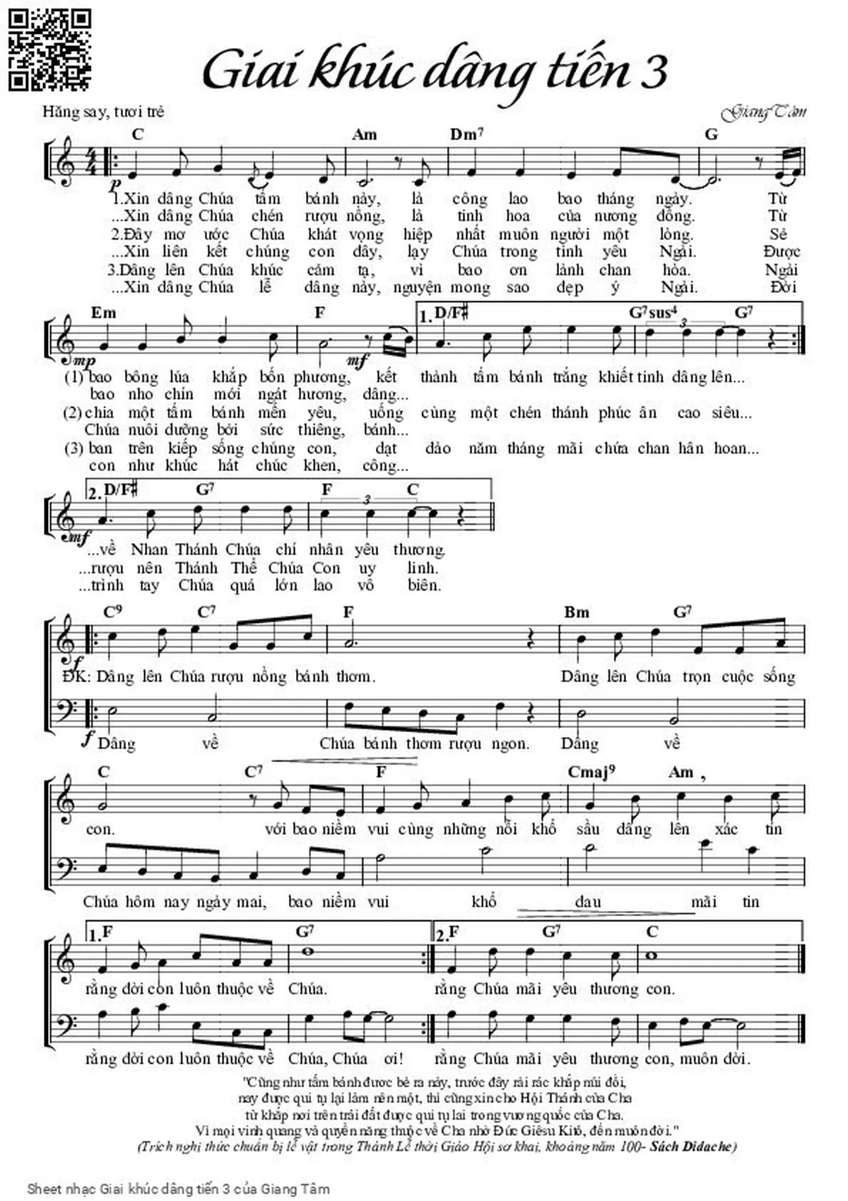 Giang Tâm Xin dâng Chúa tấm bánh này Là công lao bao tháng ngày [PDF] [Sheet] [Lyrics] [Mp4/Midi]