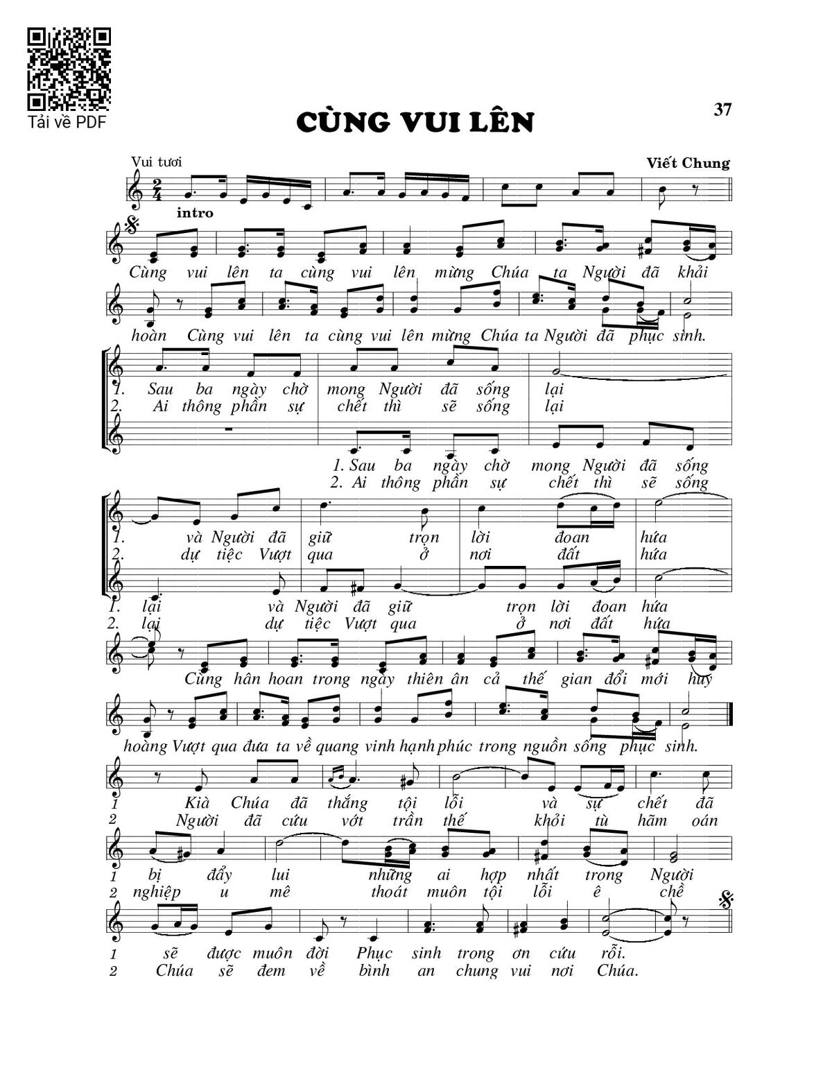 Sheet music Cùng vui lên by Viết Chung and PDF file was posted here to support you to practice singing perfectly. Sheets with notes and chords are for reference only, for non-commercial purposes only, not involved with earning money by buying and selling. Copyright is belong to song writer/author and copyright owner. Truongca.com do not own any copyrighted content. You can download the high-quality PDF files which contain staffs by PDF link above.