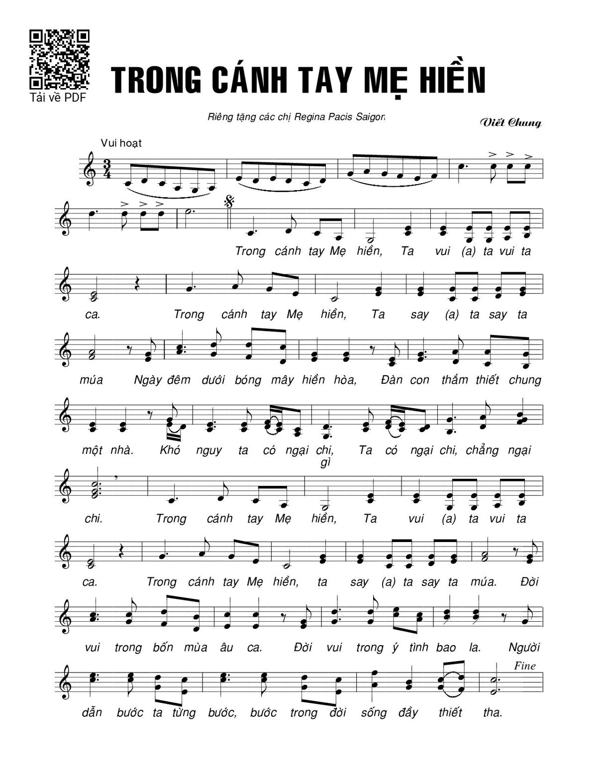 Page 1 of Sheet music PDF Trong cánh tay Mẹ hiền - Viết Chung