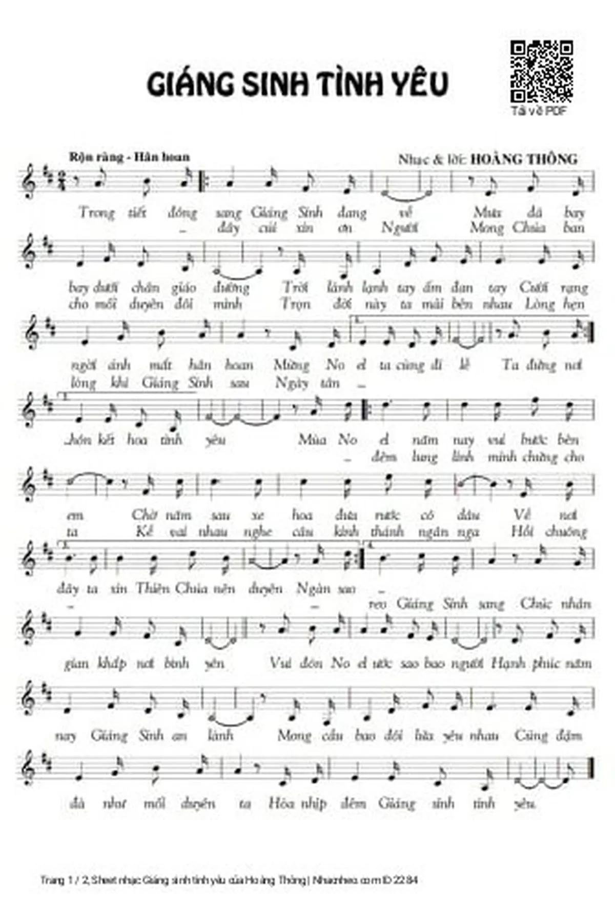 Hoàng Thông Trong tiết đông sang giáng sinh đang về Mưa đã bay bay dưới chân giáo đường [PDF] [Sheet] [Lyrics] [Mp4/Midi]