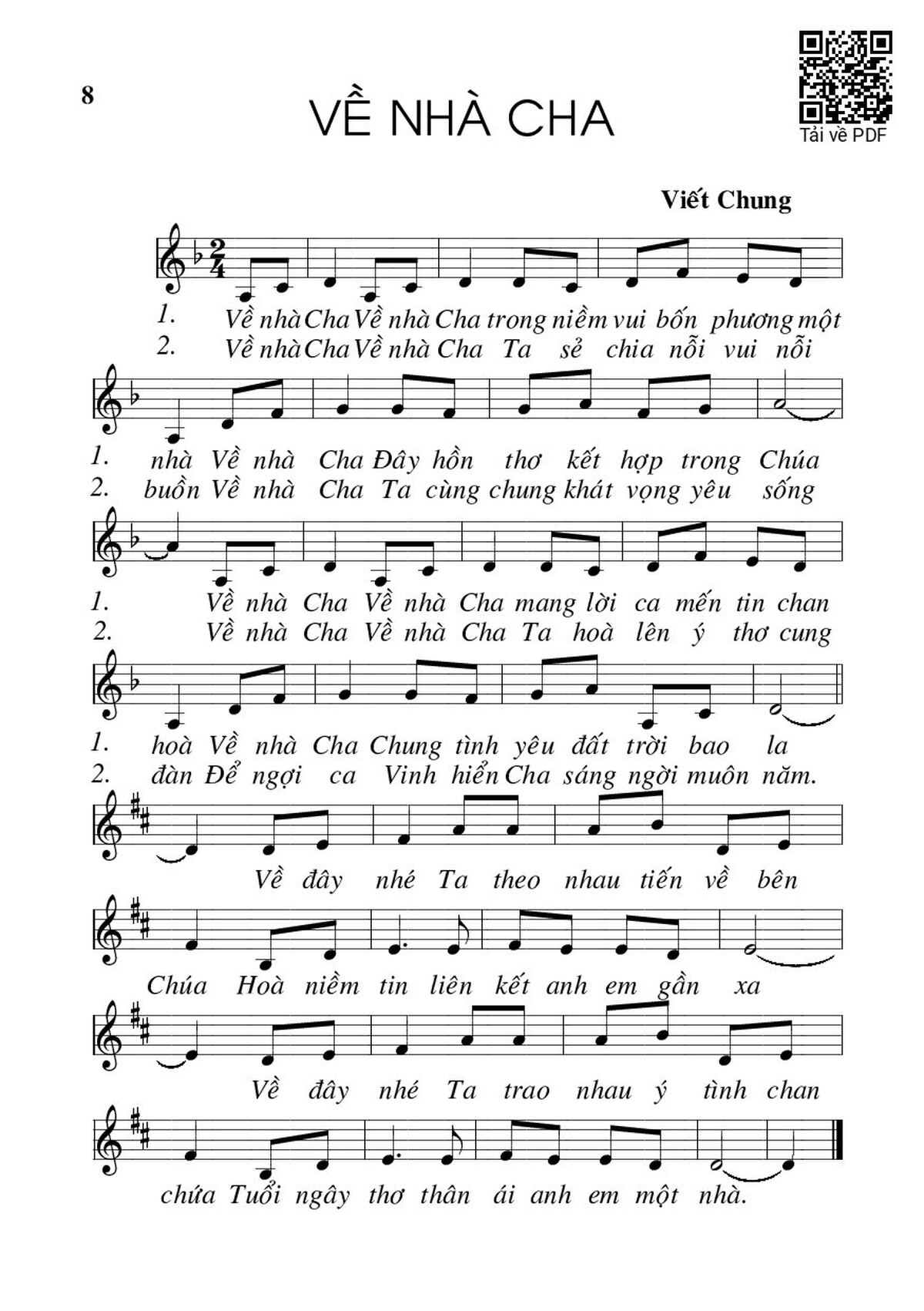 Sheet music Về nhà Cha by Viết Chung and PDF file was posted here to support you to practice singing perfectly. Sheets with notes and chords are for reference only, for non-commercial purposes only, not involved with earning money by buying and selling. Copyright is belong to song writer/author and copyright owner. Truongca.com do not own any copyrighted content. You can download the high-quality PDF files which contain staffs by PDF link above.