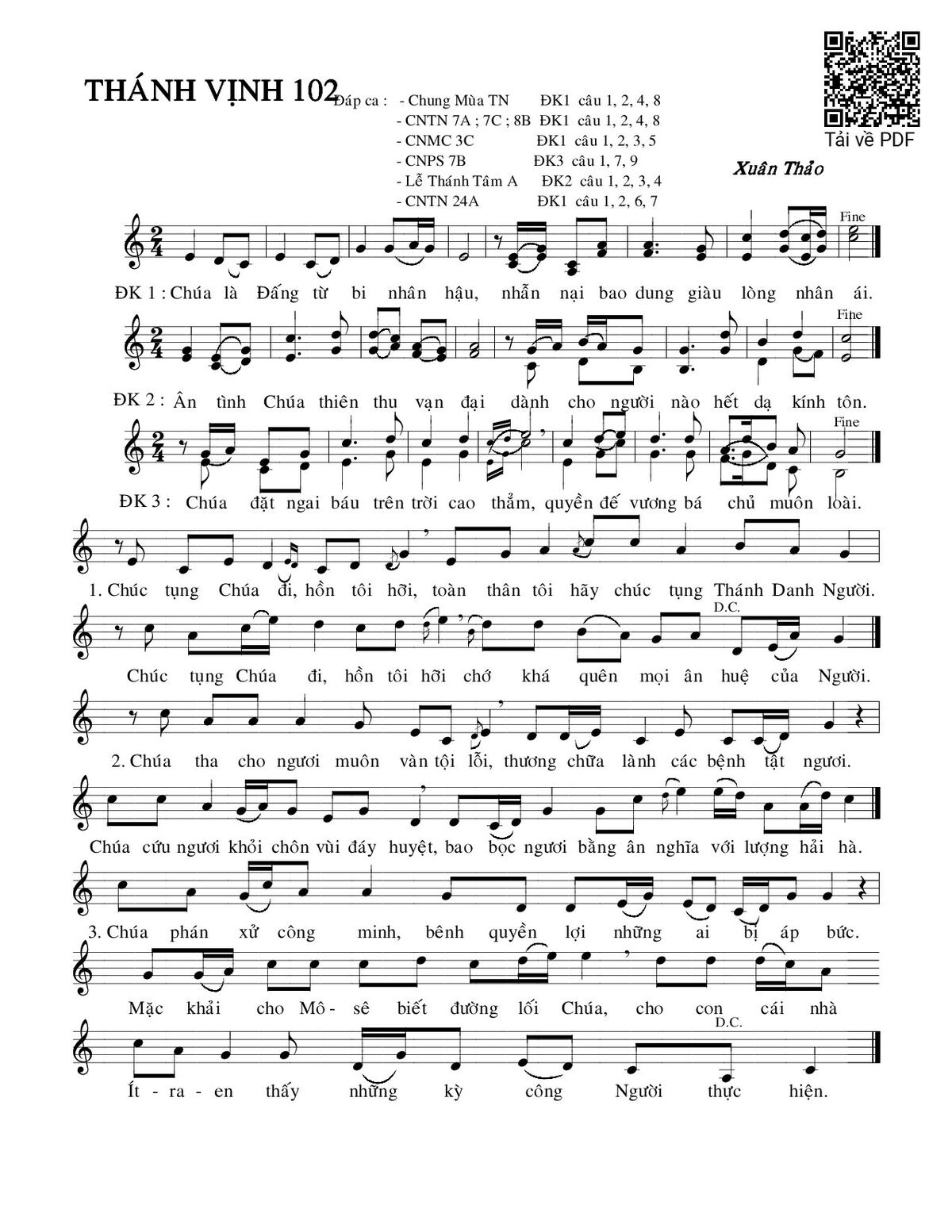 Category 🌾 Nhạc Thánh Ca, 🌾 Thánh Vịnh - Đáp Ca, 🌾 Thánh Vịnh 102