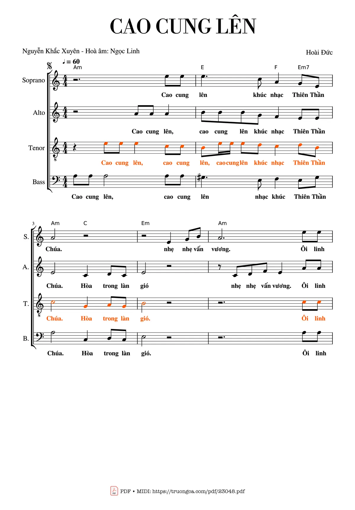 Sheet PDF with the same name Cao cung lên (4 Bè Bass, Tenor, Contralto, Soprano):