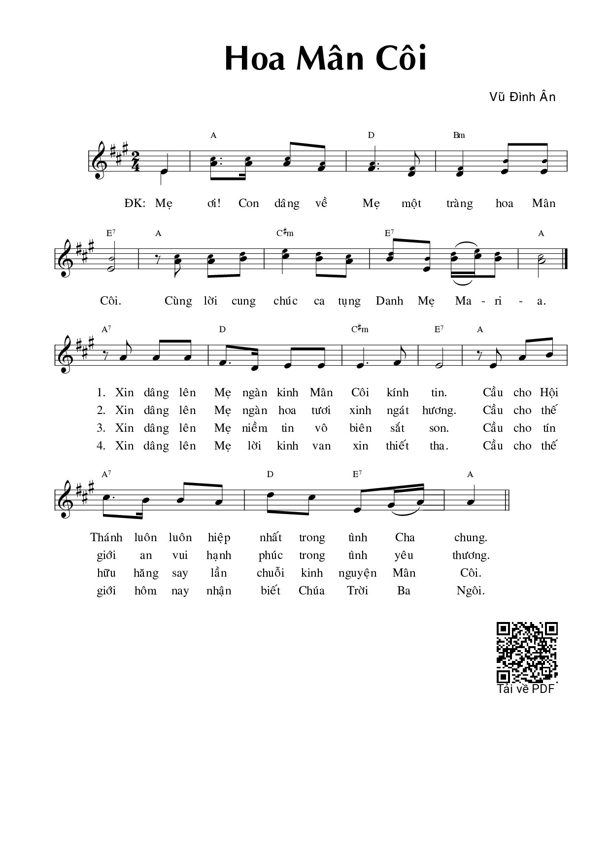 Điệp khúc. Mẹ ơi! Con dâng về Mẹ một tràng hoa Mân Côi. Cùng lời cung chúc ca tụng Danh Mẹ Maria.