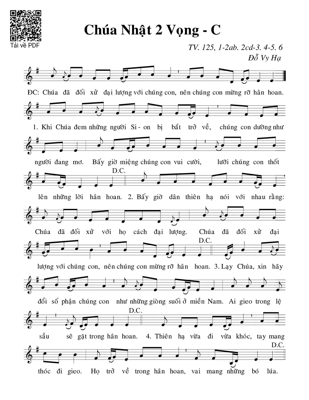 Sheet PDF with the same name Thánh Vịnh 125, Chúa Nhật 2C Mùa Vọng: